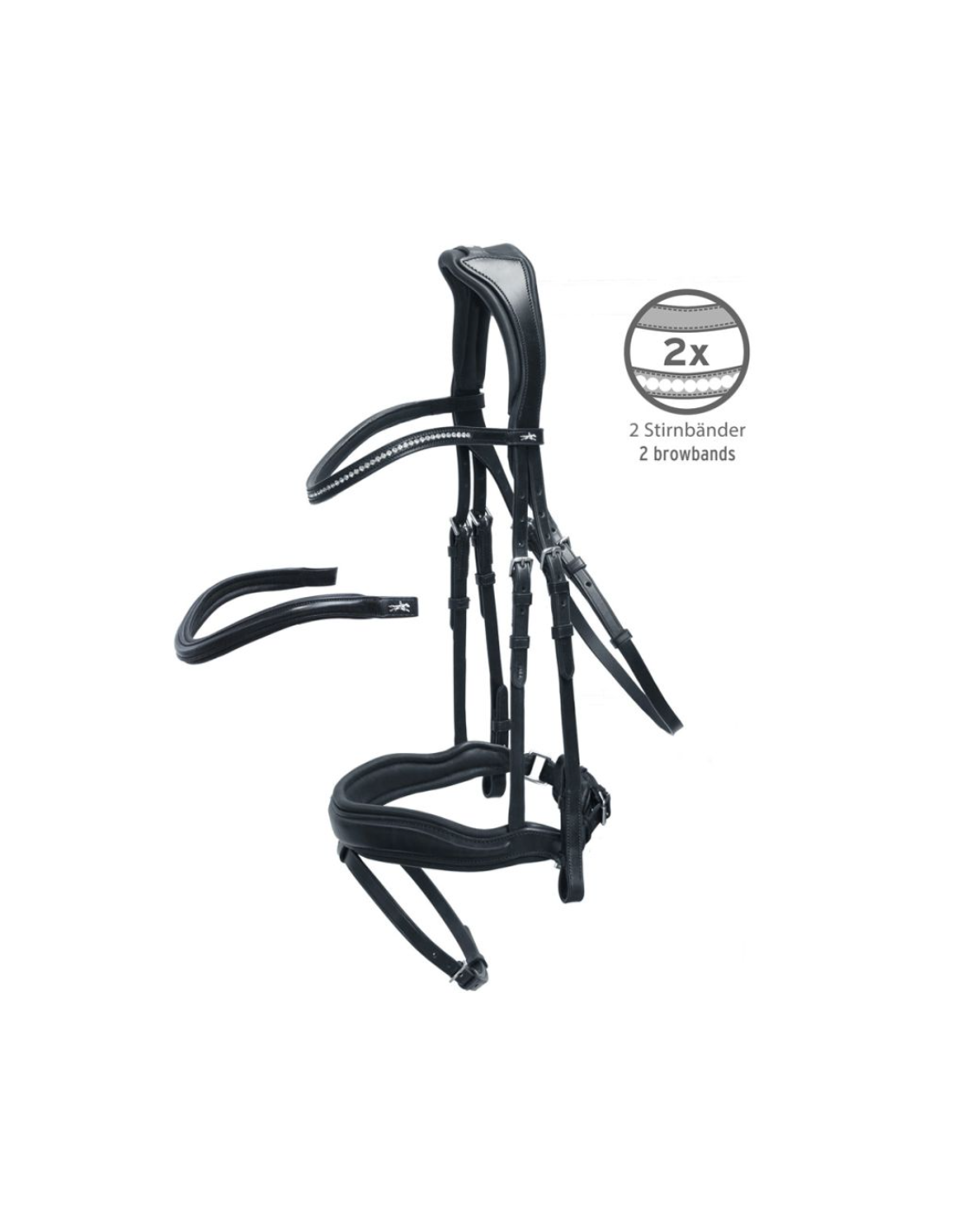 Le Bridon Stanford est fourni avec deux variantes de frontaux, permettant de personnaliser l’esthétique selon l’utilisation ou l’occasion :
