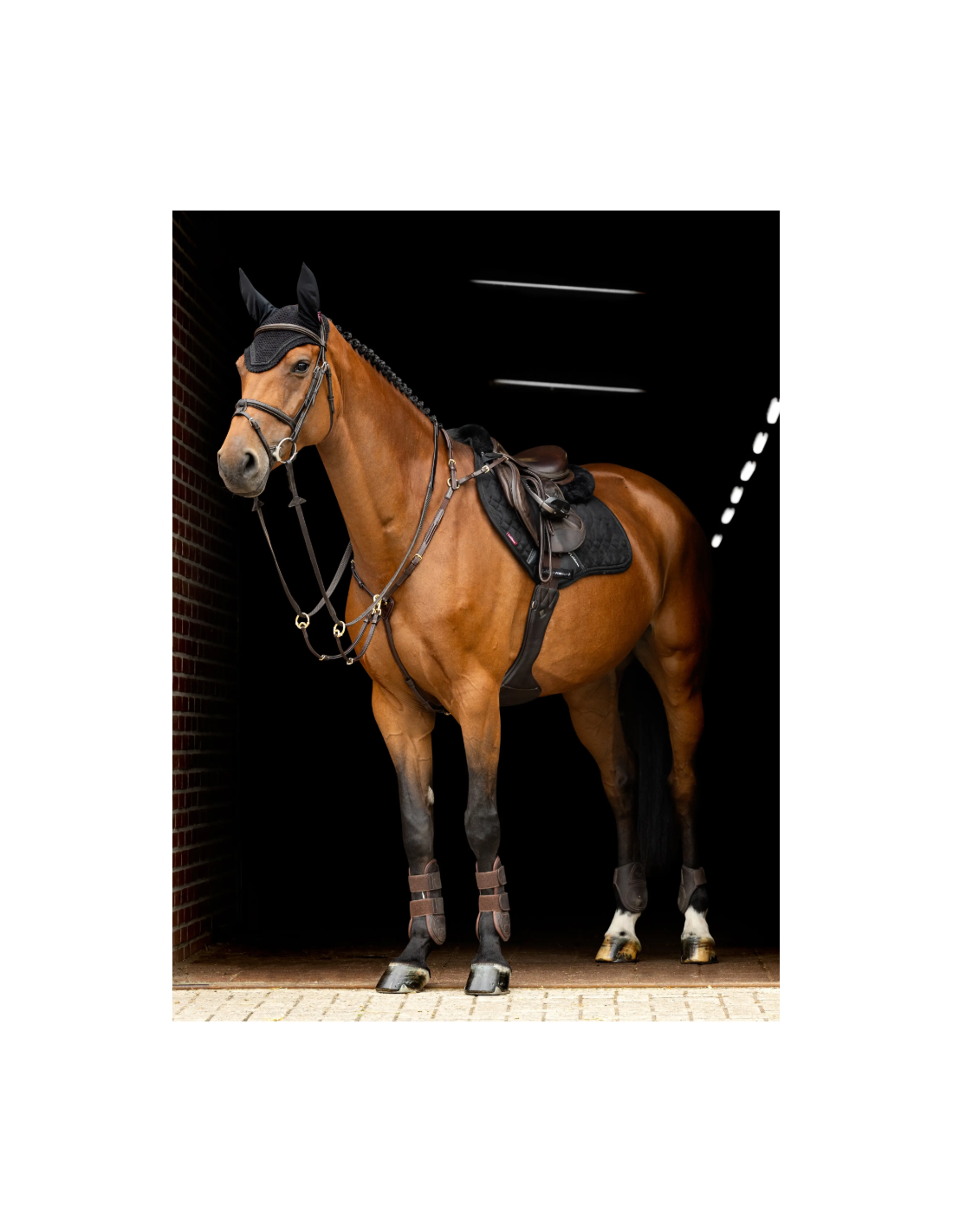 Pour un look encore plus raffiné, le tapis de selle CSO Crystal peut être assorti avec le bonnet anti-mouches Crystal et les gants Crystal LeMieux. Cet ensemble élégant permet de créer une tenue coordonnée et professionnelle, à la fois pour le cavalier et pour son cheval.