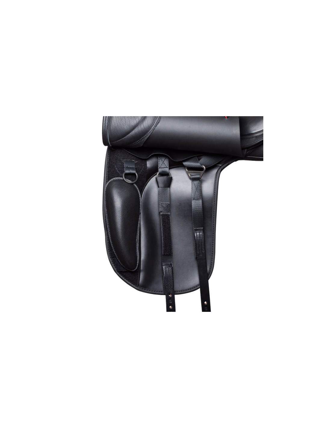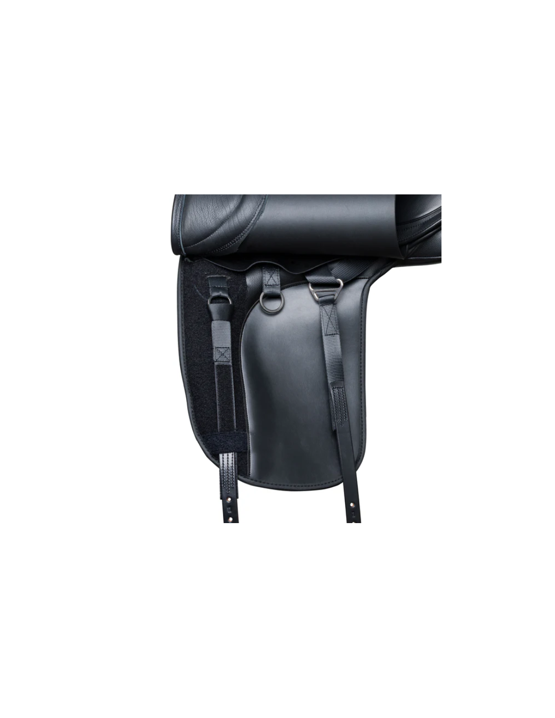 La conception des panneaux de la selle T9 Dressage assure un contact étroit entre le cavalier et sa monture. Cette proximité favorise une communication fine et précise, essentielle en dressage, où chaque détail compte. Le cheval bénéficie également d’un confort optimal, grâce à une répartition équilibrée des pressions et un ajustement respectueux de sa morphologie.