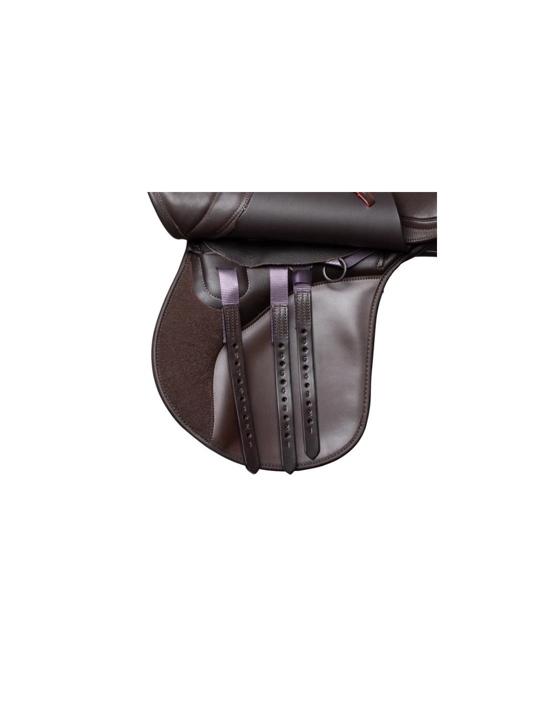 Tous les points de contact essentiels – siège et avances de quartiers – sont recouverts d’un cuir souple et haut de gamme, garantissant confort et durabilité. La fabrication anglaise et le flocage en laine 100 % britannique apportent un gage de qualité et de savoir-faire reconnu dans le monde équestre.