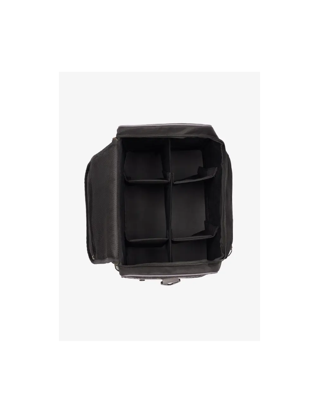 Le sac de pansage Elite Pro LeMieux offre un rangement structuré et pratique grâce à ses nombreuses poches et sa poche avant zippée. Conçu en nylon denier imperméable avec une base moulée renforcée, il se montre robuste et adapté à toutes les conditions, même la boue. Facile à transporter grâce à sa poignée ergonomique et sa bandoulière matelassée réglable, il accompagne idéalement le pansage au pré, à l’écurie ou en représentation. Brosses vendues séparément. Entretien : essuyer avec un chiffon doux uniquement.
