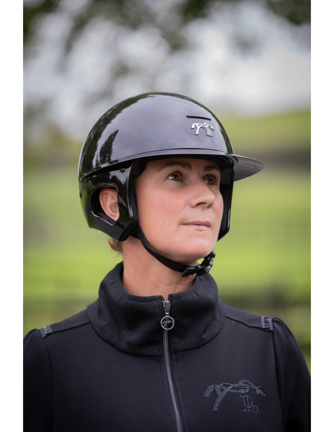 Disponible en noir mat ou brillant, avec visière courte ou longue, il s’adapte aux préférences de chaque cavalière et s’intègre parfaitement à une tenue élégante.