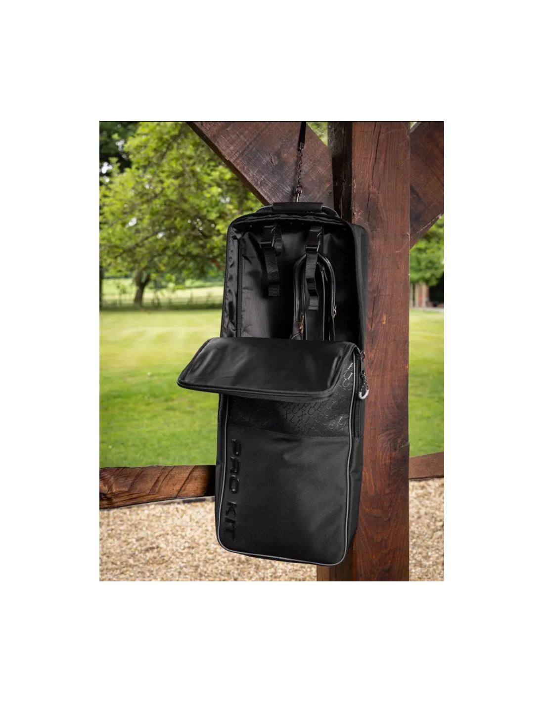 L’Elite Pro se distingue par son style soigné et son agencement pratique. Son compartiment intérieur zippé protège efficacement le bridon et évite tout frottement. La poignée matelassée, quant à elle, garantit une prise en main confortable, même lors de longs transports ou de journées chargées.