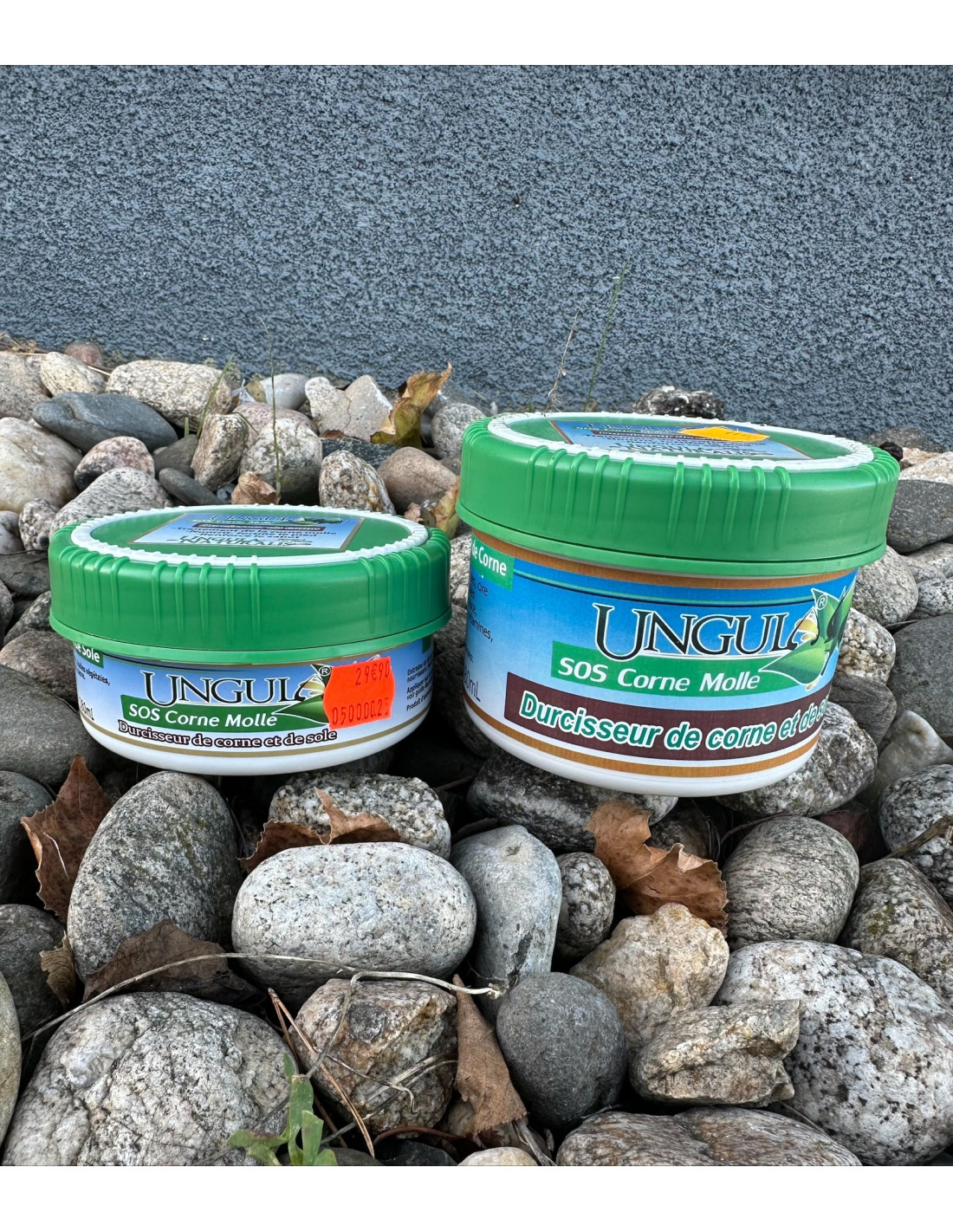 Le SOS Corne Molle - Ungula est un soin naturel complet conçu pour renforcer et protéger les sabots de votre cheval. Ce durcisseur de corne et de sole favorise un durcissement progressif de la corne existante, tout en la nourrissant en profondeur grâce à sa formule riche et naturelle. Idéal pour les chevaux ayant une corne fragile ou sensible, il contribue à améliorer la résistance et la solidité du sabot sur le long terme.