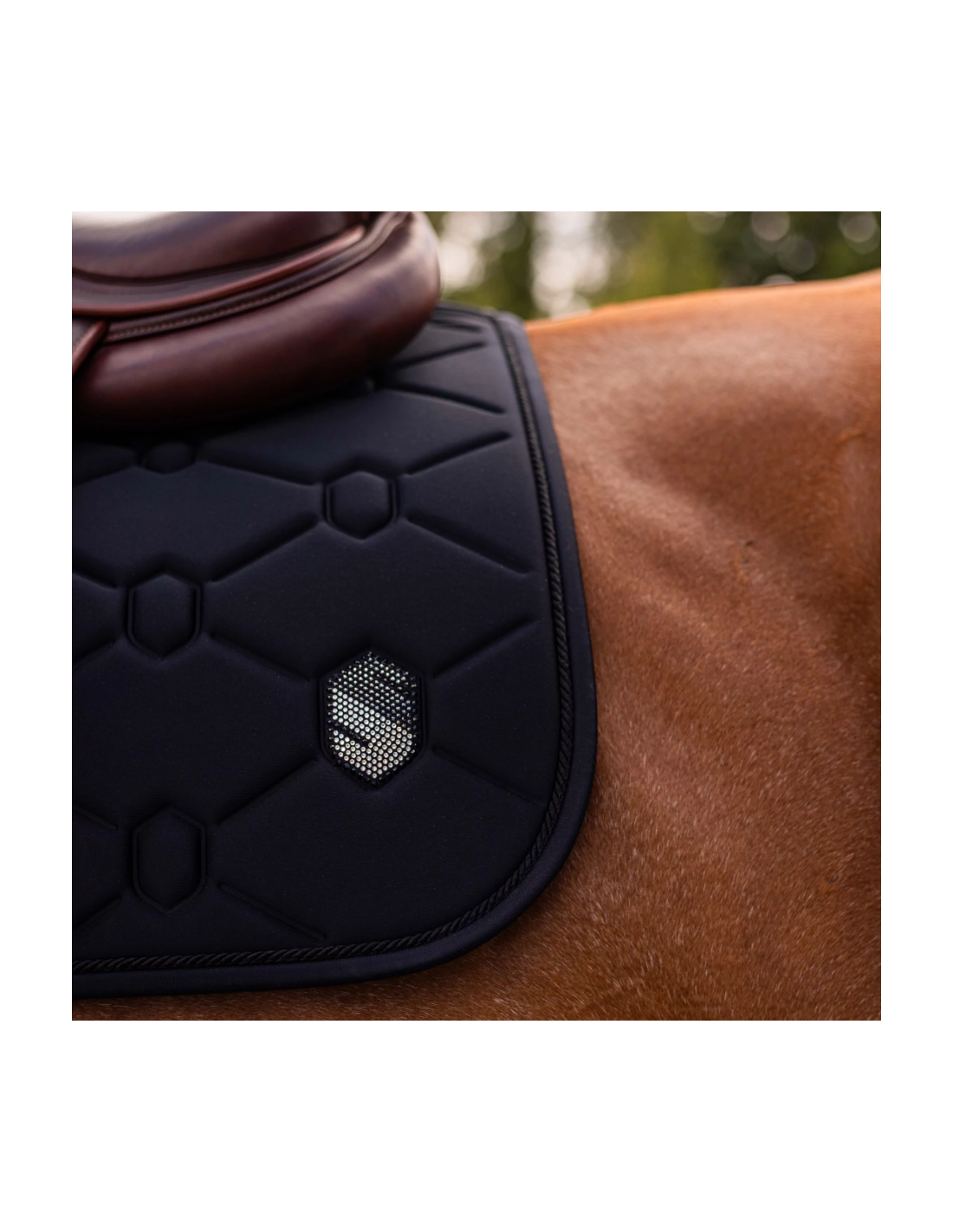 La structure technique du tapis Spineshield intègre une mousse à mémoire de forme, combinée à un système de grip interne, garantissant une excellente tenue sous la selle. Cette technologie limite les déplacements latéraux, réduit les glissements et améliore la précision des aides.
