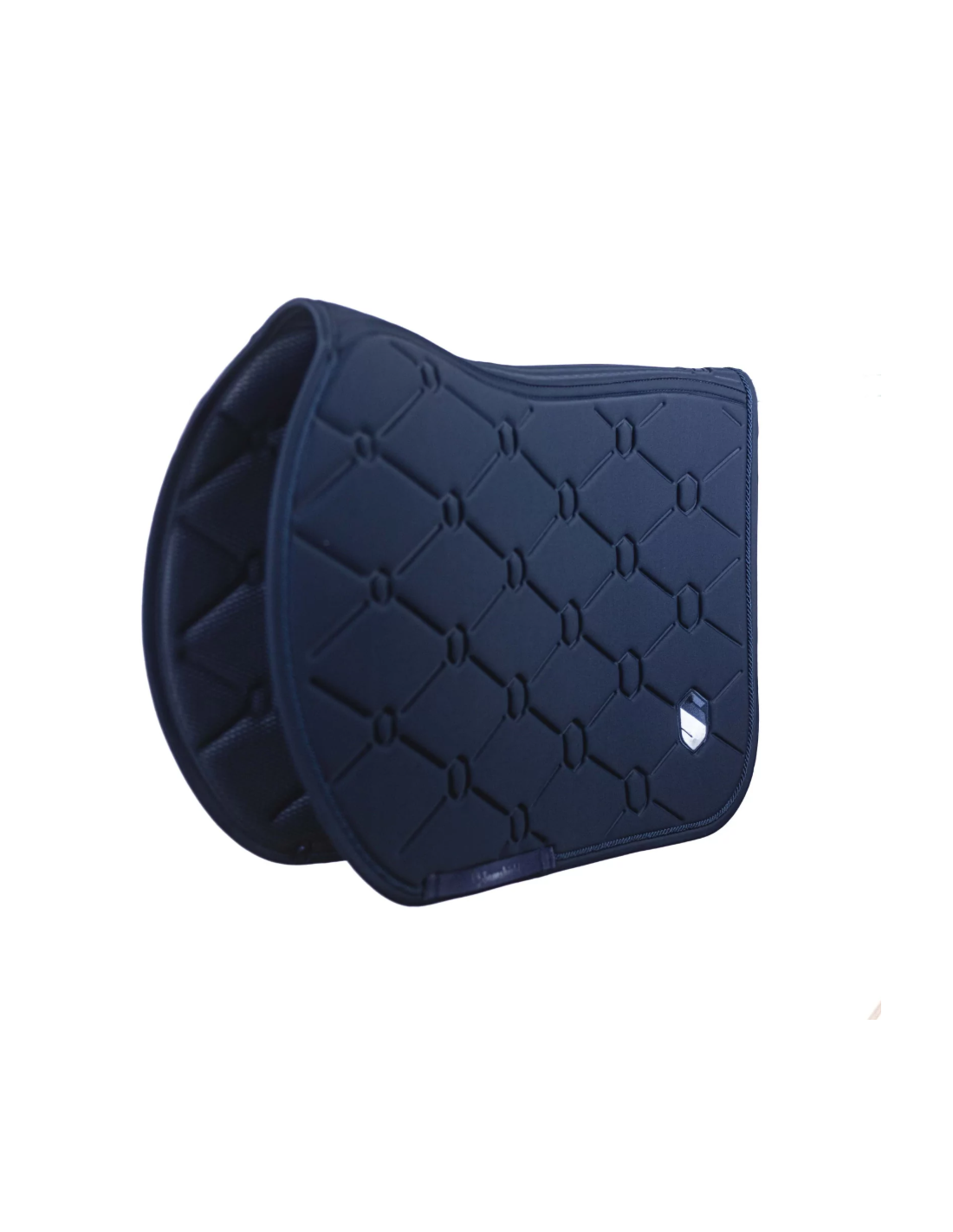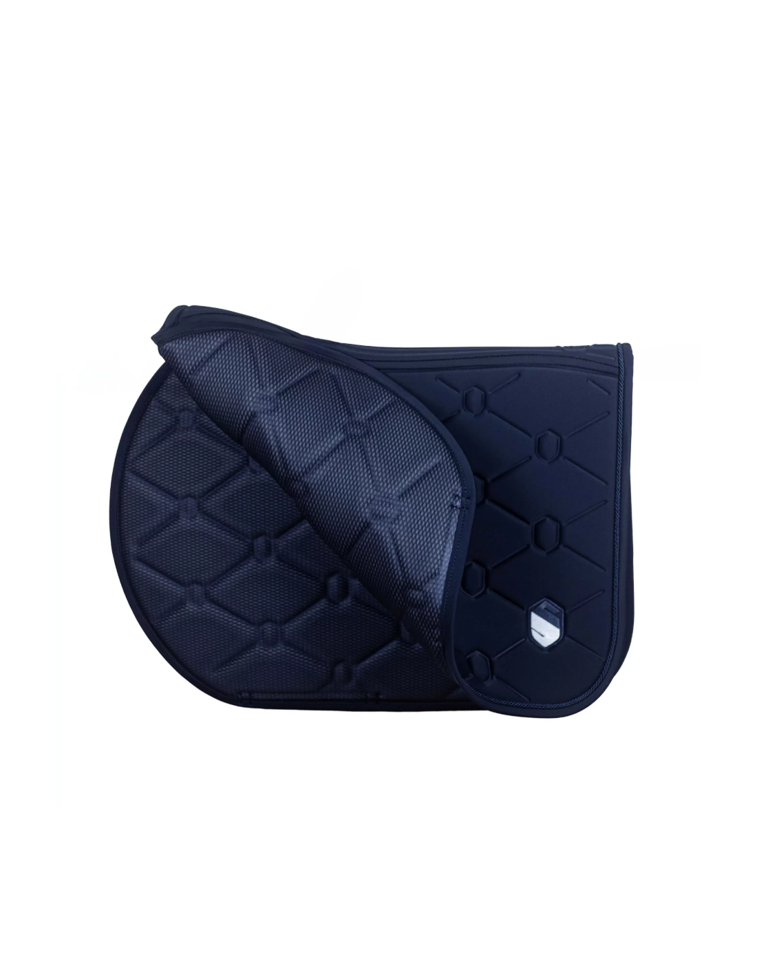 Le tapis de selle Spineshield Embroidery Samshield associe les dernières innovations en matière de protection du dos du cheval à une esthétique raffinée, sublimée par une broderie élégante. Conçu pour le saut d’obstacles et le concours complet d’équitation (CCE), ce tapis haut de gamme est le résultat de trois années de recherche et développement menées autour de la biomécanique équine, afin d’optimiser à la fois le confort du cheval, la stabilité de la selle et la qualité de la locomotion.