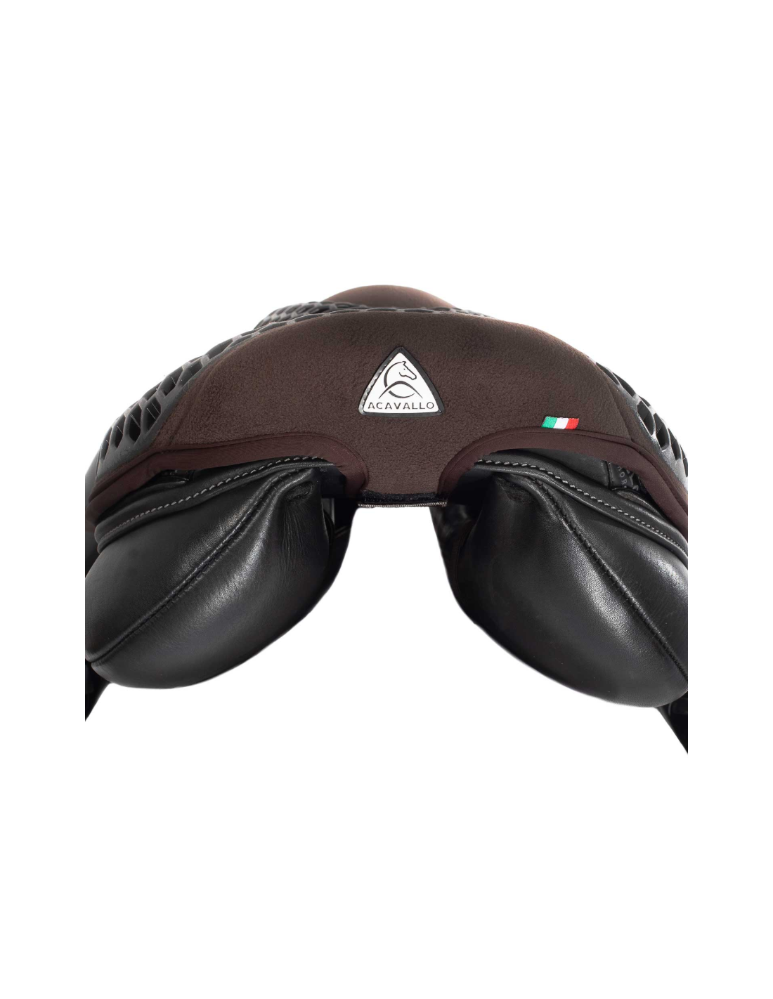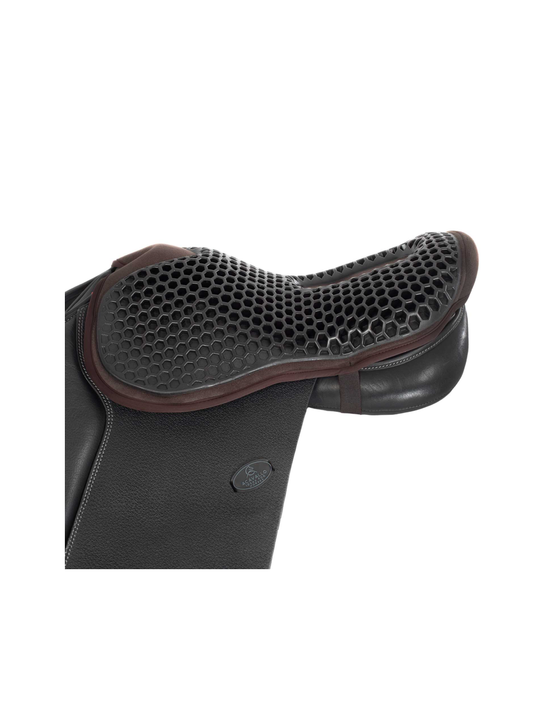 Le gel Acavallo® intégré au couvre-selle présente des propriétés techniques avancées. Il absorbe les chocs, atténue les vibrations et participe à la stabilisation de la selle, réduisant les mouvements indésirables pendant la monte.