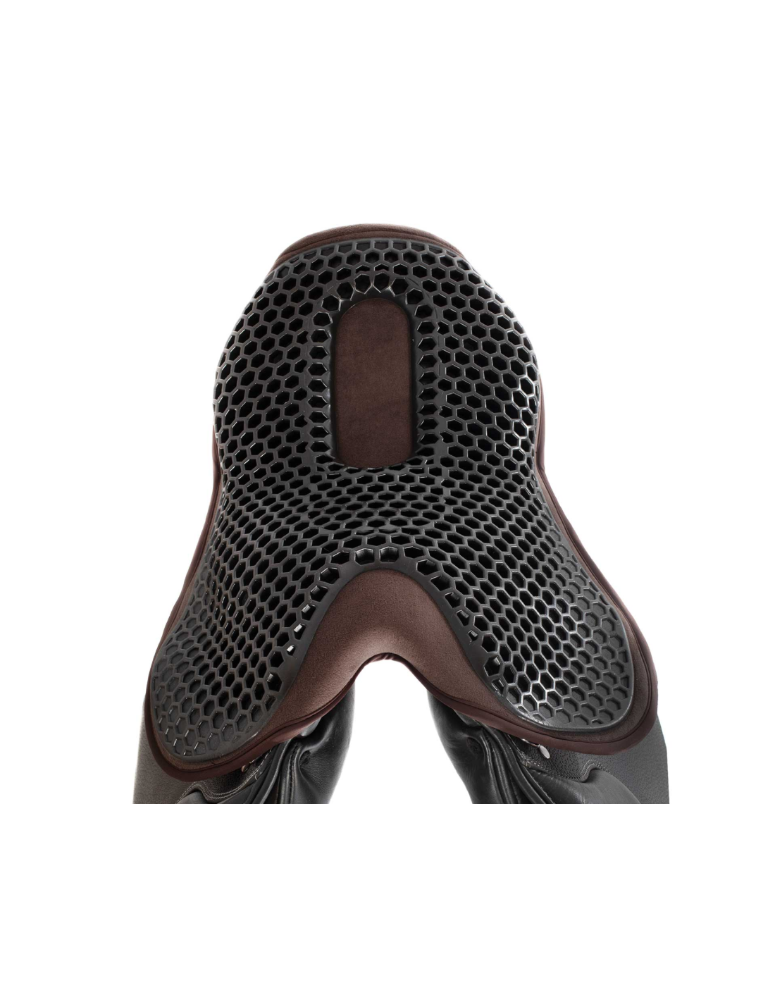 Sa conception ergonomique vise à soulager les zones sensibles du bassin tout en conservant un contact étroit avec la selle, sans modifier l’équilibre ni la position du cavalier.