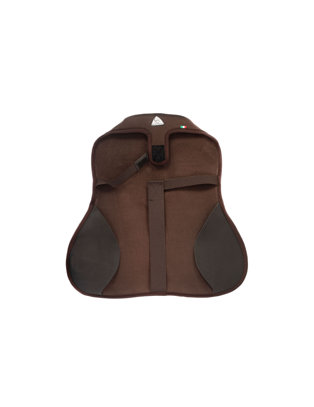 Le couvre-selle Ortho-Coccyx Acavallo® est doté d’une sangle élastique longitudinale qui passe sous la selle sans modifier les supports d’origine. Des sangles latérales se fixent aux panneaux internes de la selle afin de garantir une stabilité optimale, empêchant tout déplacement du couvre-selle pendant l’utilisation.