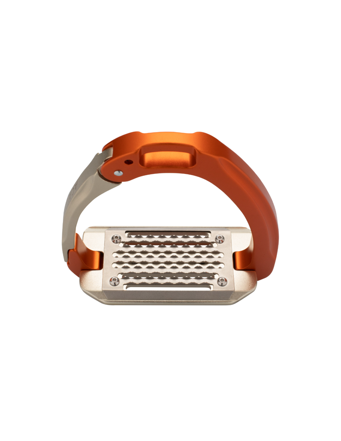 L’assise est réalisée en acier inoxydable, sélectionné pour sa résistance à la corrosion et sa longévité. Les trous horizontaux allongés intégrés au design empêchent l’accumulation de sable et de saleté, assurant une adhérence fiable et constante quelles que soient les conditions d’équitation, en carrière comme en extérieur.