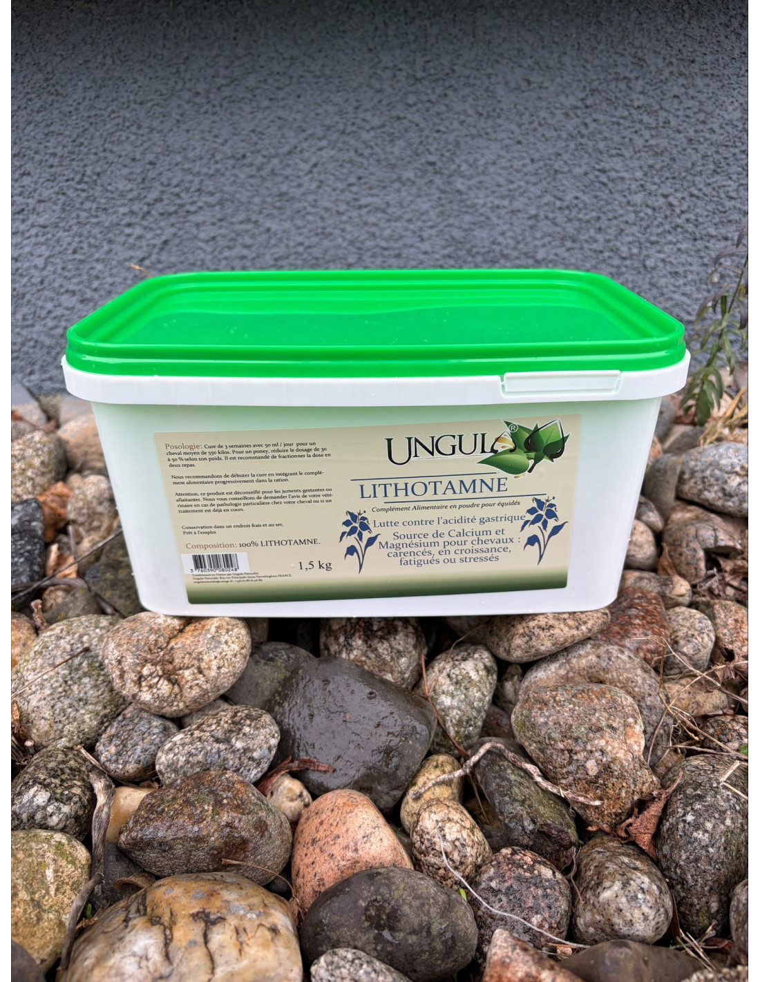 Le Lithothamne Ungula Naturalis est un complément alimentaire en poudre 100 % naturel destiné aux chevaux et poneys. Riche en calcium et magnésium, il contribue à lutter contre l’acidité gastrique et à soutenir les équidés carencés, en croissance, fatigués ou soumis à du stress. Facile à intégrer dans la ration quotidienne, ce complément favorise la santé digestive, la solidité osseuse et le bien-être général de l’équidé.