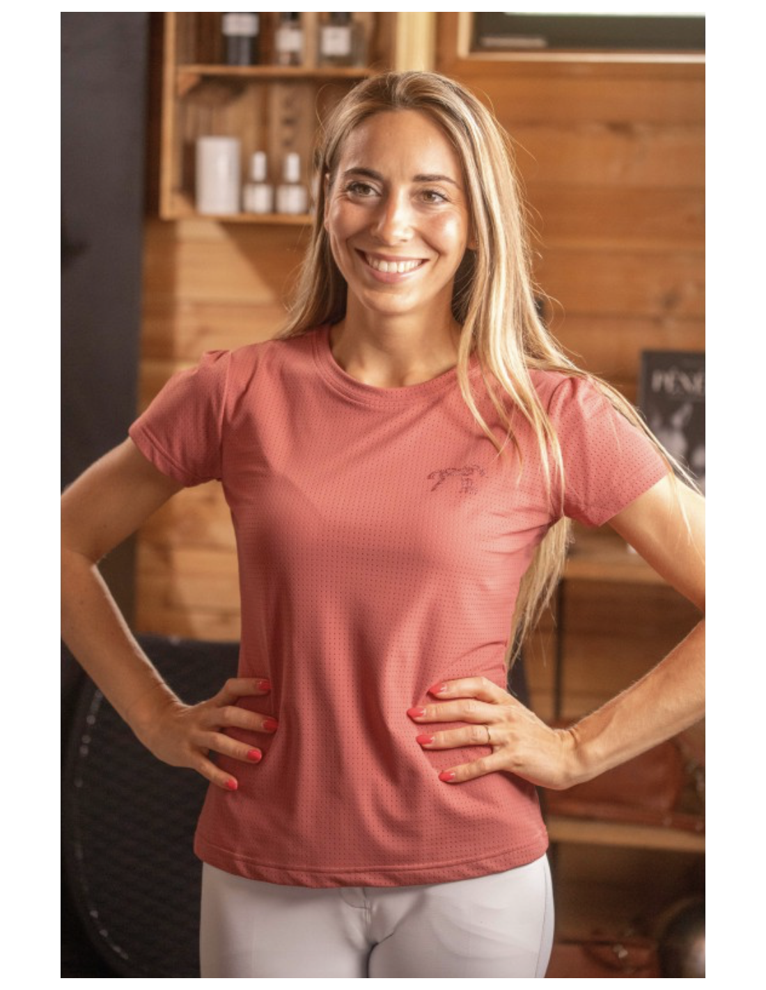 Le T-shirt technique Pénélope "Techflo" est spécialement conçu pour accompagner les cavalières lors de leurs entraînements d’équitation ainsi que dans la pratique d’autres activités sportives. Confectionné dans un tissu micro-perforé, il se distingue par sa souplesse exceptionnelle et sa douceur au contact de la peau, garantissant un confort durable tout au long de l’effort.