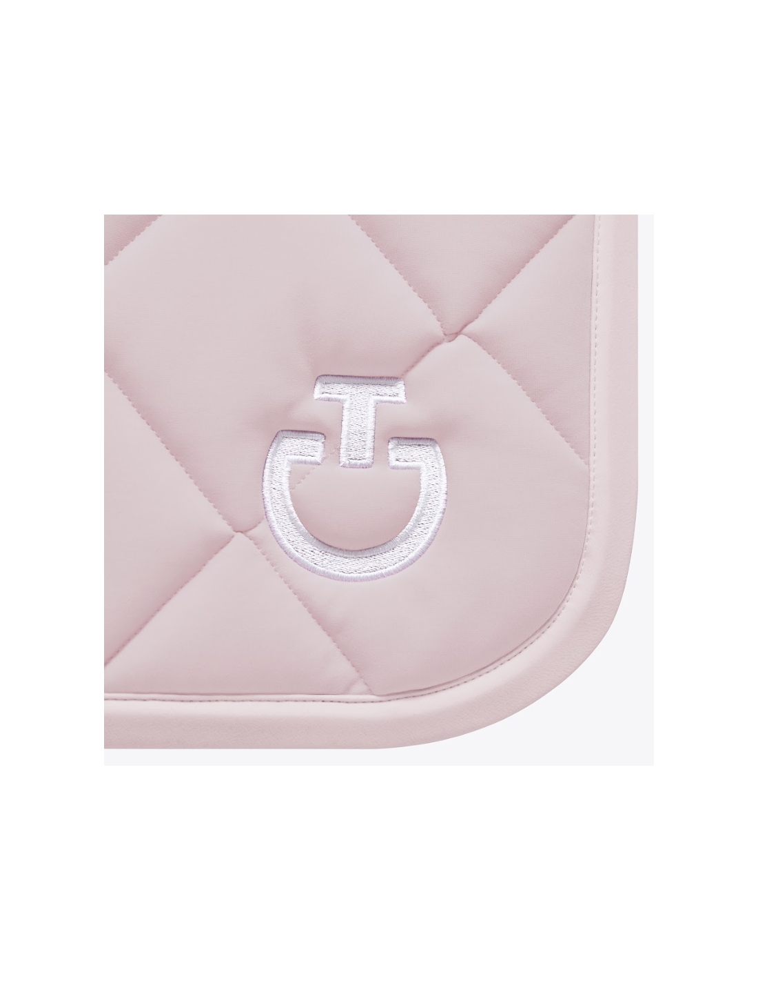 Le tapis est matelassé en losanges, offrant à la fois structure et esthétisme. Il est rehaussé d’un logo brodé contrastant sur le côté gauche, symbole de l’élégance et du raffinement propre à la marque Cavalleria Toscana. Ce détail distingue le tapis et souligne son positionnement haut de gamme dans l’équipement équestre.