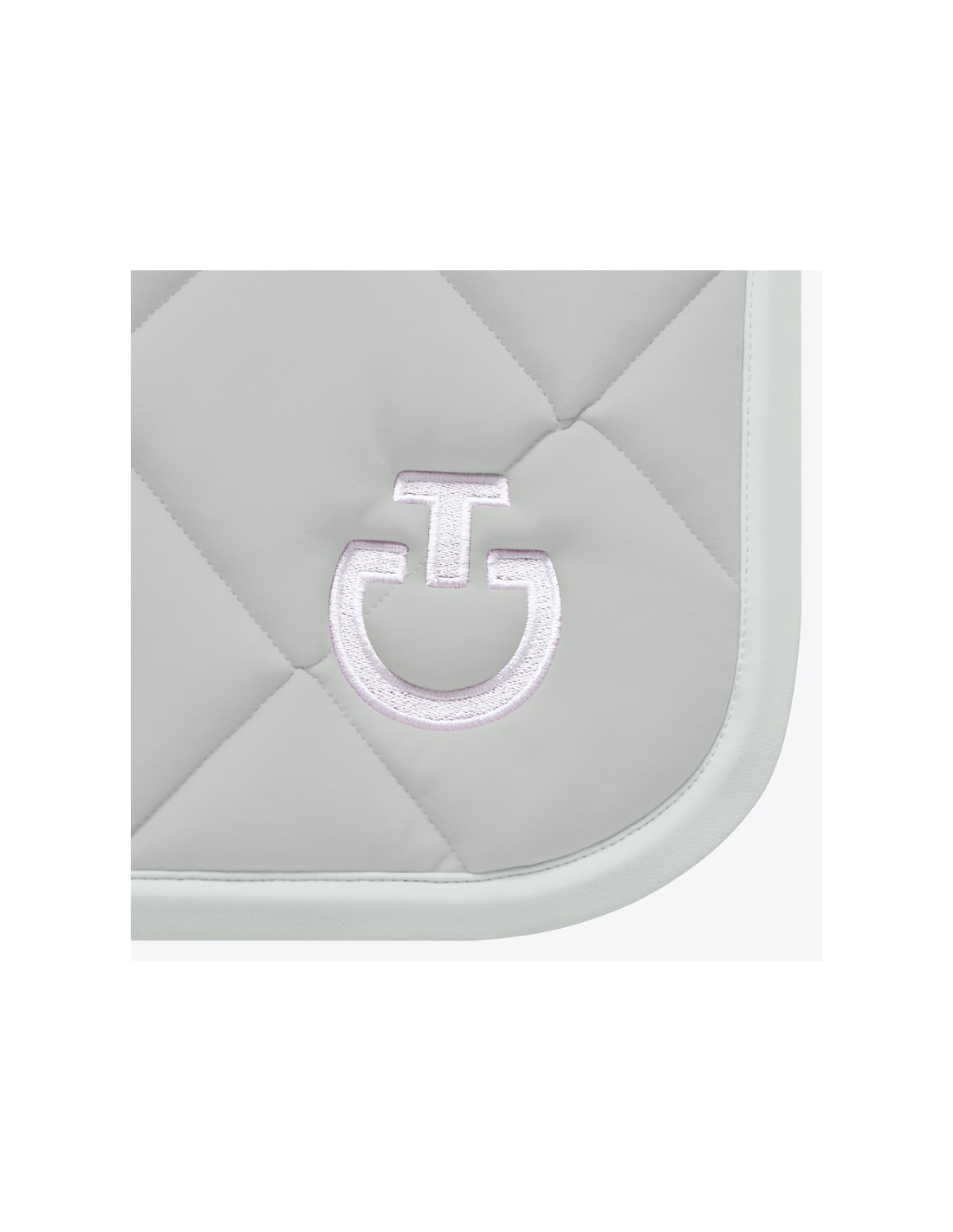Le tapis est matelassé en losanges, offrant à la fois structure et esthétisme. Il est rehaussé d’un logo brodé contrastant sur le côté gauche, symbole de l’élégance et du raffinement propre à la marque Cavalleria Toscana. Ce détail distingue le tapis et souligne son positionnement haut de gamme dans l’équipement équestre.