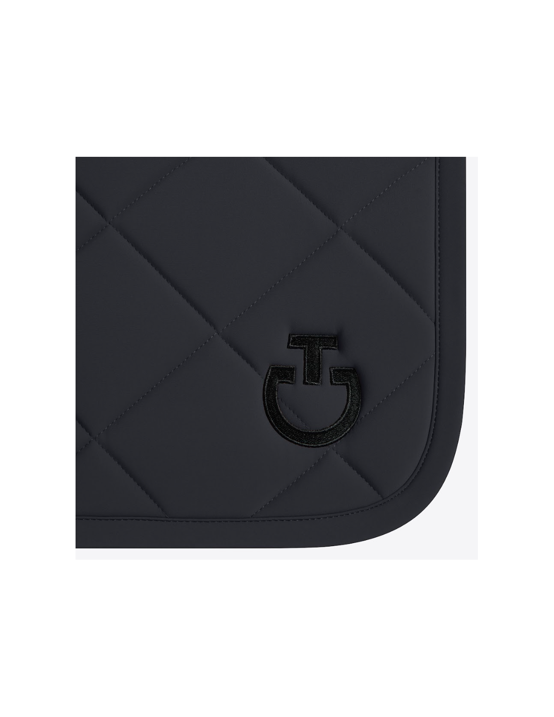 Le tapis est matelassé en losanges, offrant à la fois structure et esthétisme. Il est rehaussé d’un logo brodé contrastant sur le côté gauche, symbole de l’élégance et du raffinement propre à la marque Cavalleria Toscana. Ce détail distingue le tapis et souligne son positionnement haut de gamme dans l’équipement équestre.