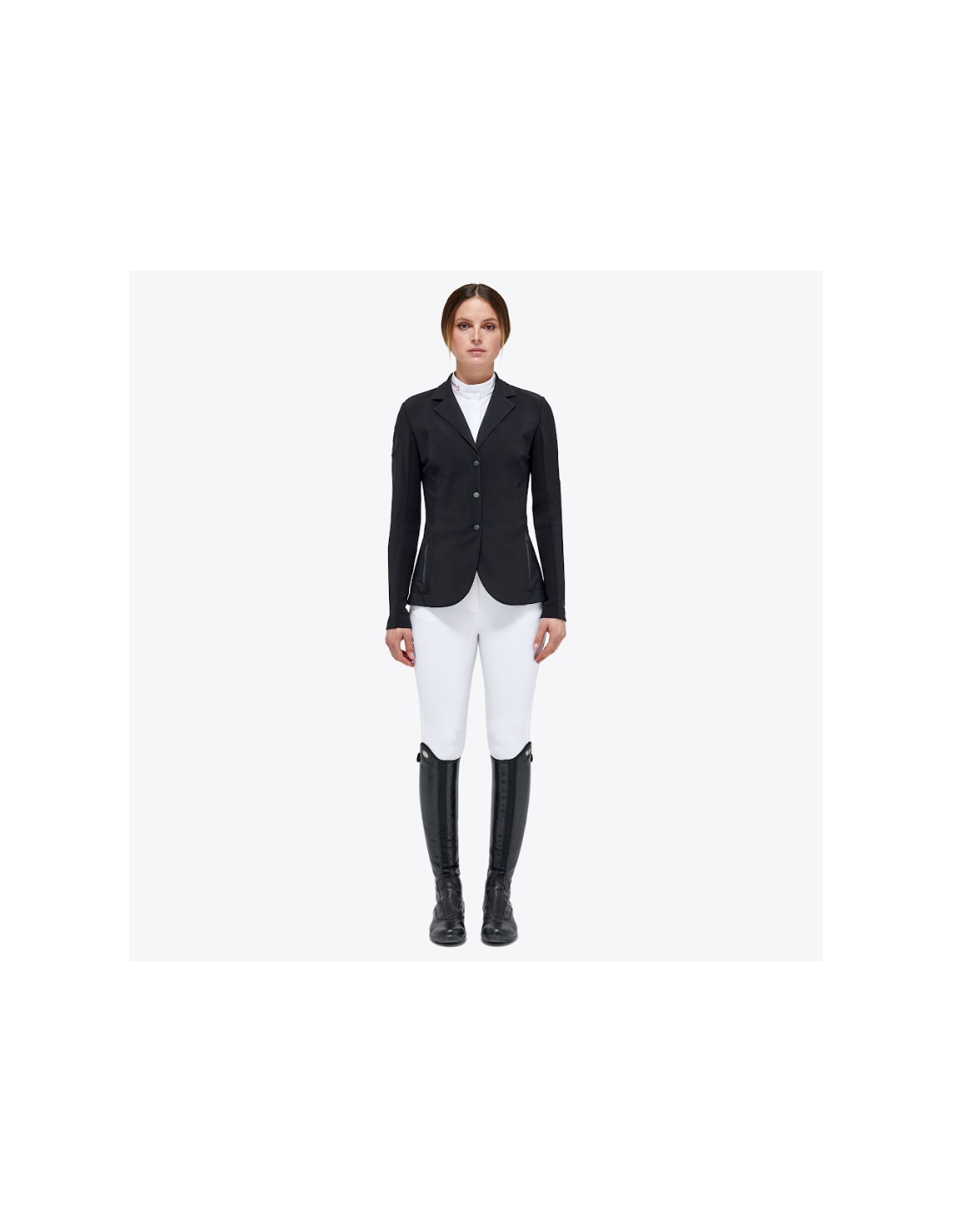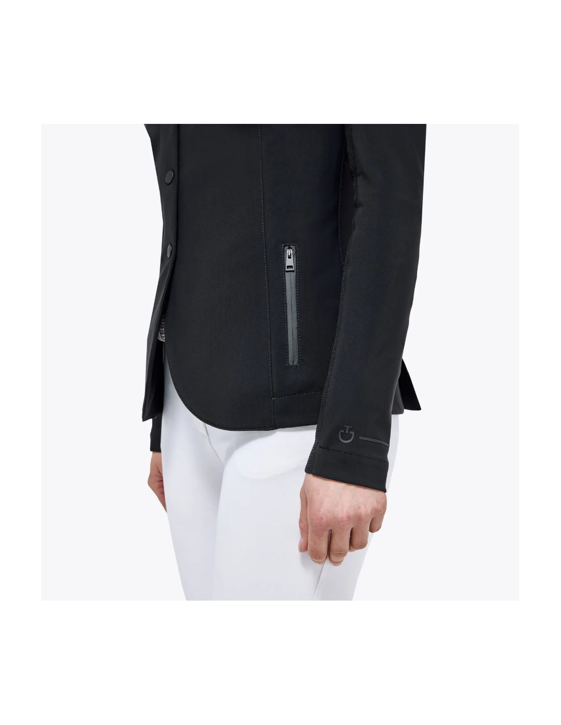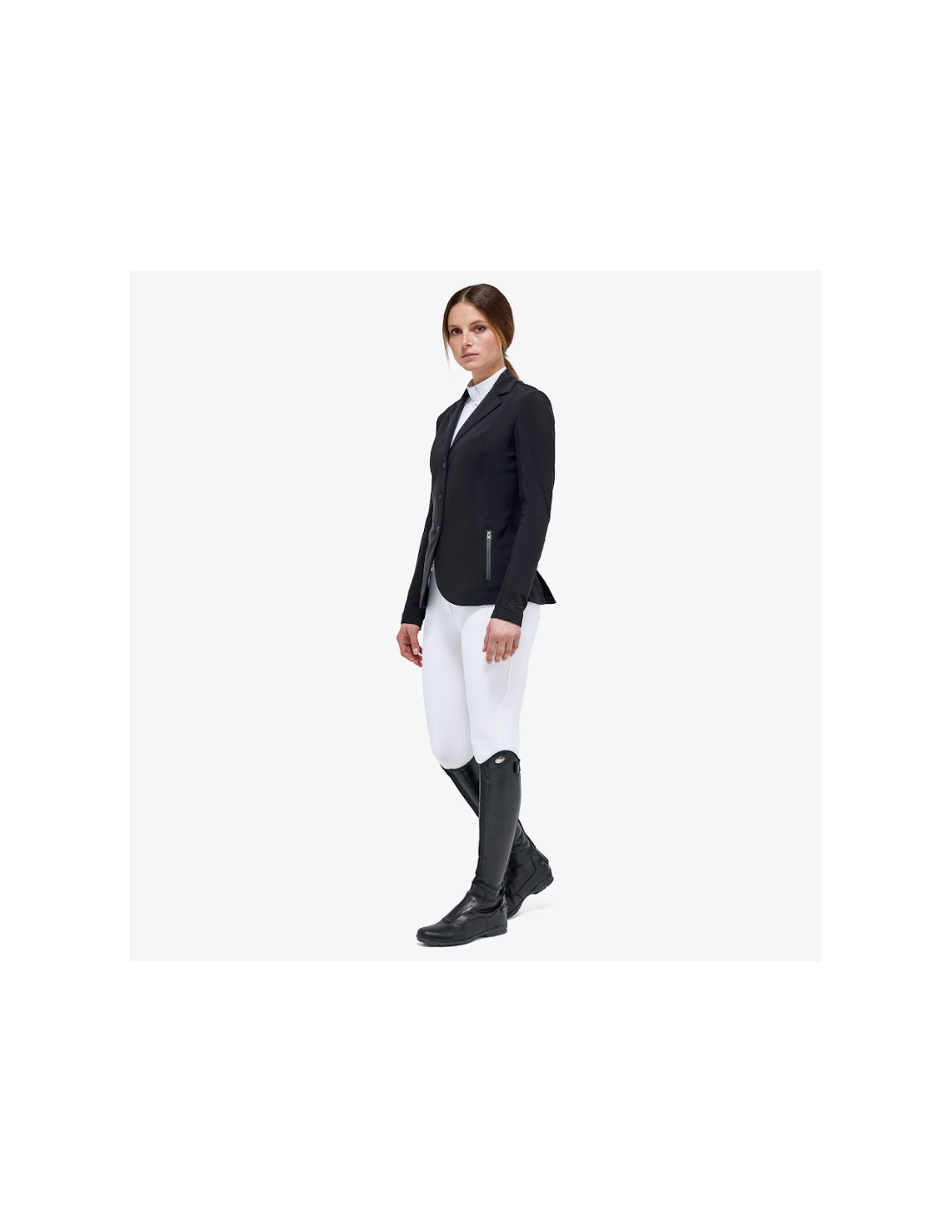 Grâce à sa conception bi-stretch, la veste épouse parfaitement les formes du corps sans entraver les mouvements. Elle accompagne chaque geste à cheval avec fluidité, offrant une liberté de mouvement essentielle en selle.