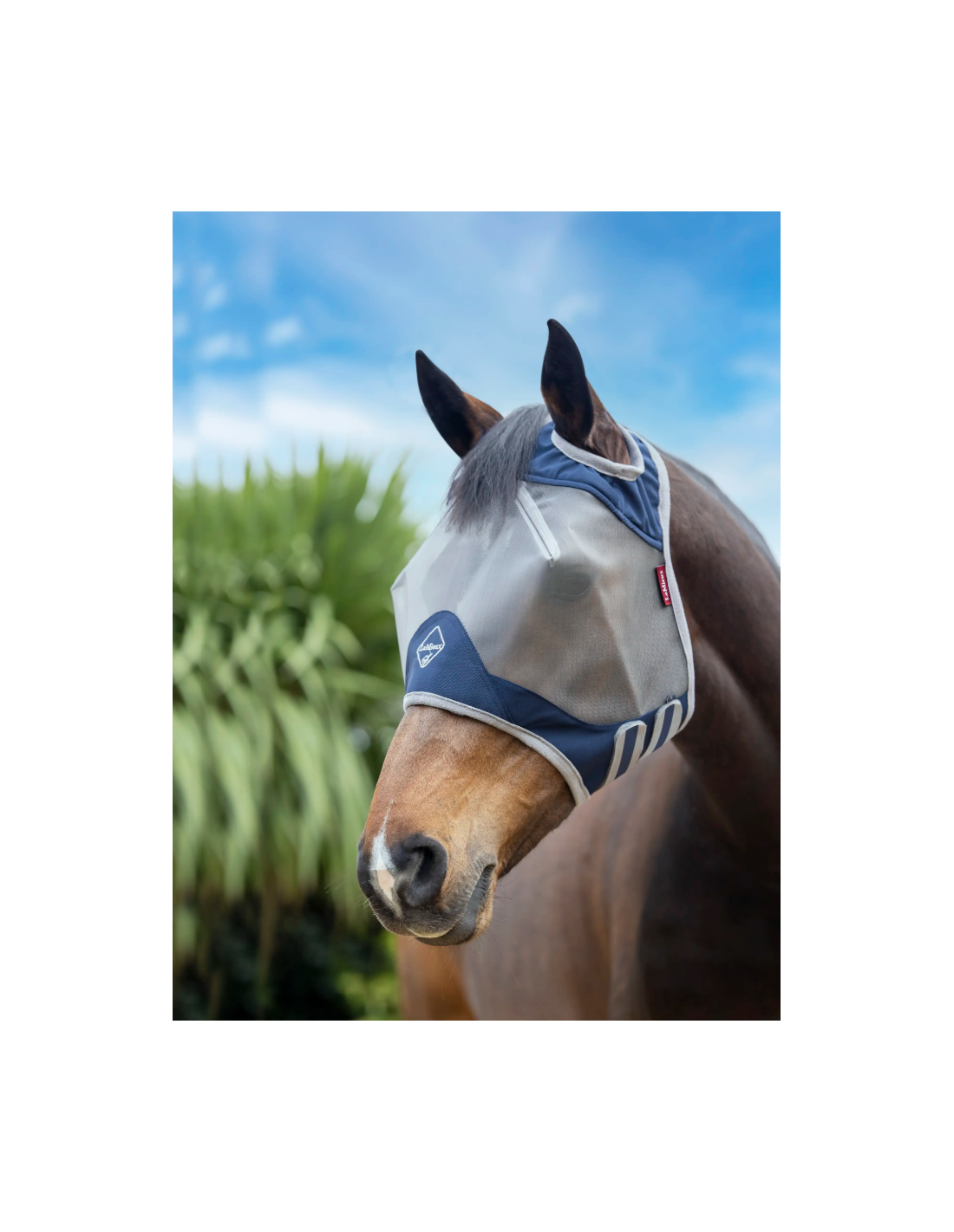 Fabriqué à partir d’un mesh résistant avec protection anti-UV 75 %, ce masque protège efficacement contre les rayons du soleil tout en formant une barrière contre les insectes irritants. Sa structure garantit une vision claire et dégagée, essentielle pour le bien-être et la sérénité du cheval, tout en assurant une excellente circulation de l’air.