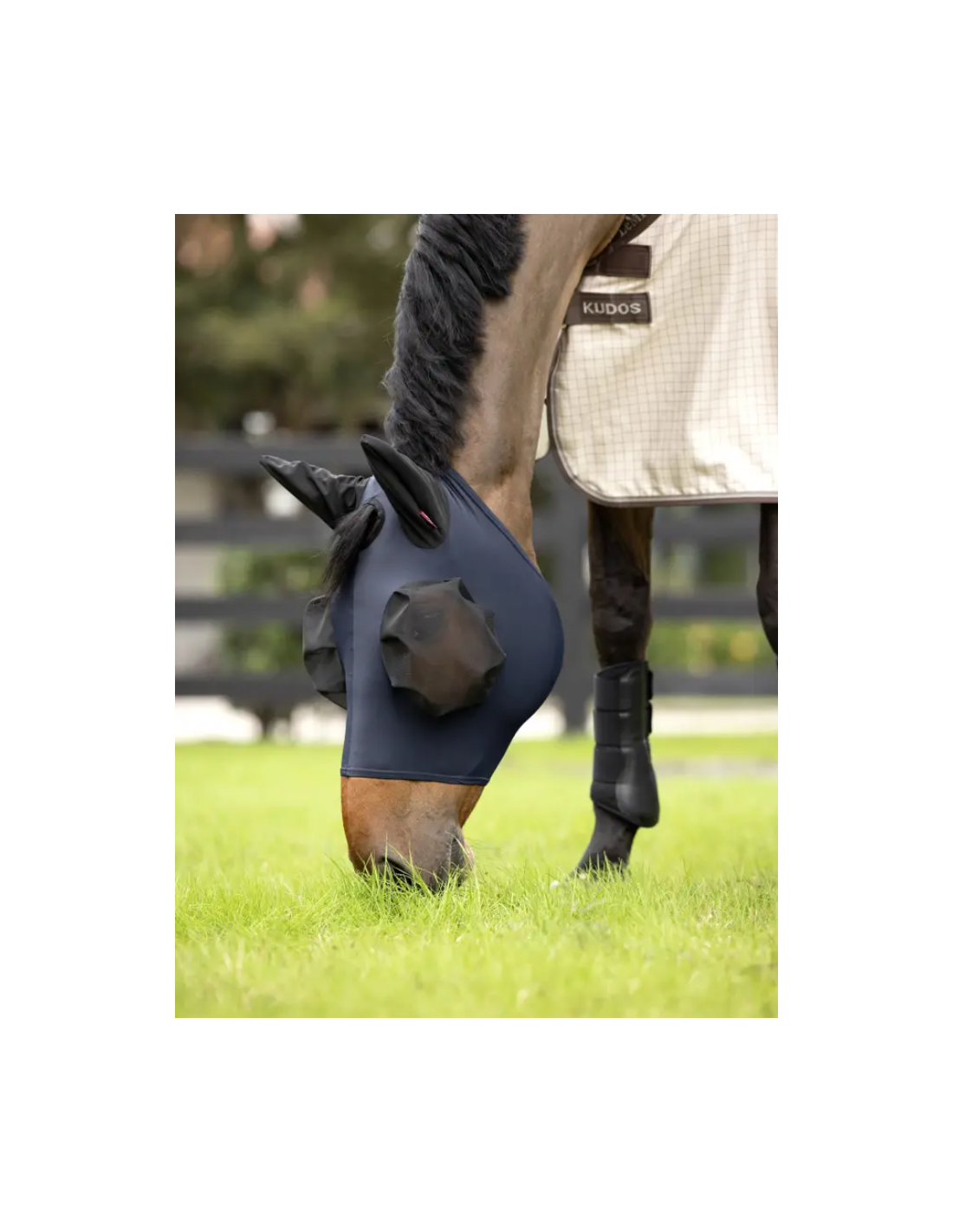 Les ourlets au niveau des yeux permettent une liberté totale de mouvement et une vision dégagée, tandis que les oreilles en mesh respirant favorisent la circulation de l’air pour maintenir votre cheval au frais, même par temps chaud. Une fente au niveau du toupet a été intégrée pour améliorer le confort et la sécurité, garantissant un maintien optimal du masque pendant l’activité.