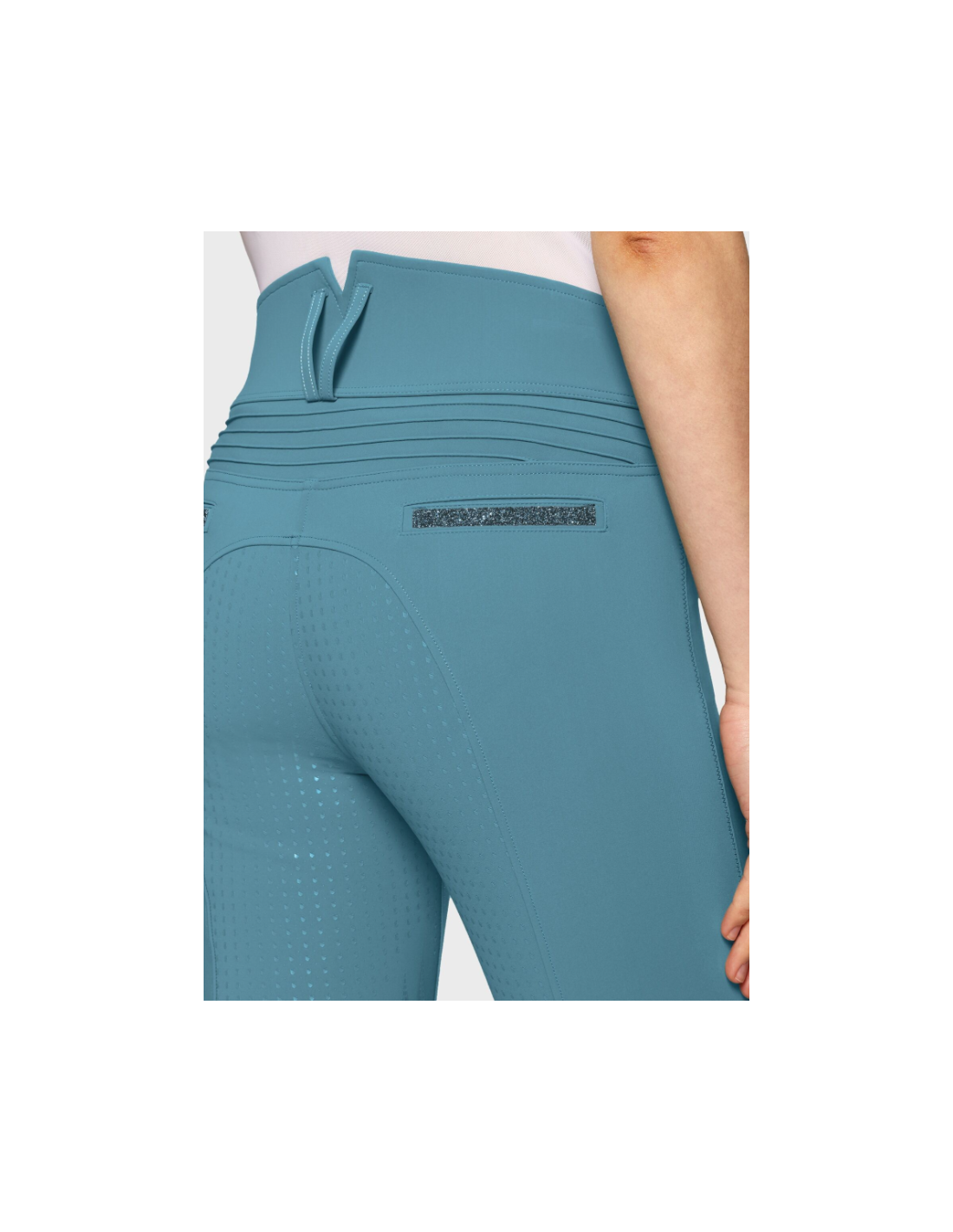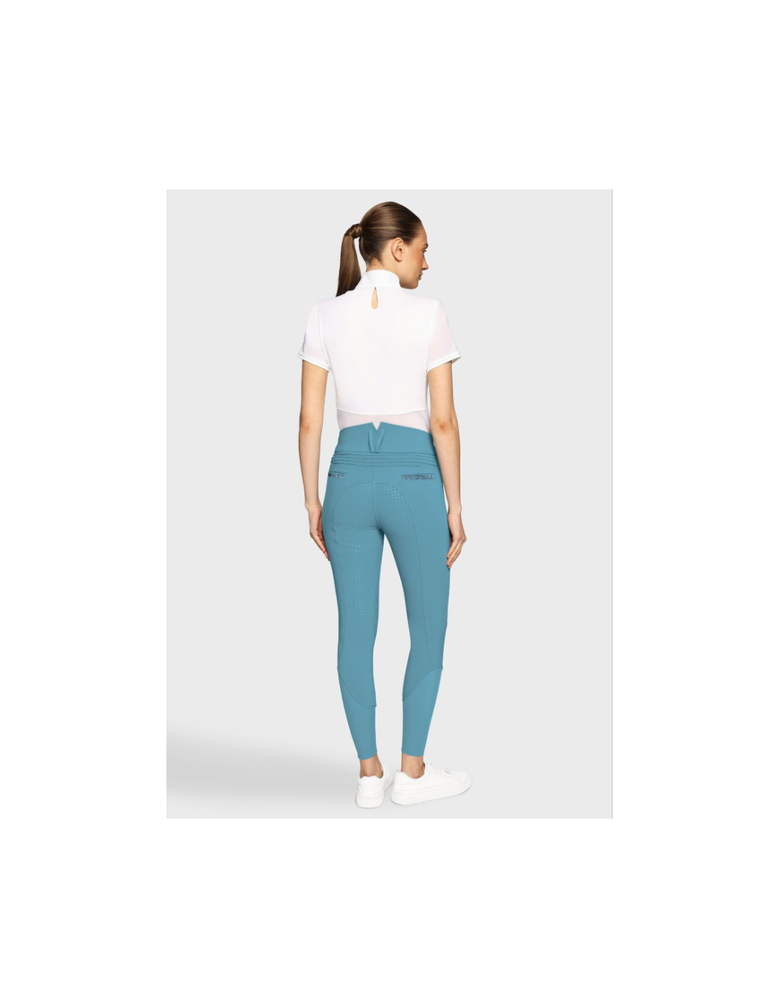 Le Claranova se démarque par sa taille ultra haute, spécialement conçue avec un arrière en V et des coutures contrastées qui structurent visuellement la silhouette. Cette coupe unique permet d’apporter un maintien renforcé au niveau de la taille tout en affinant la ligne. Elle assure également une excellente stabilité en selle, tout en garantissant une liberté de mouvement optimale lors de toutes les phases de travail à cheval.