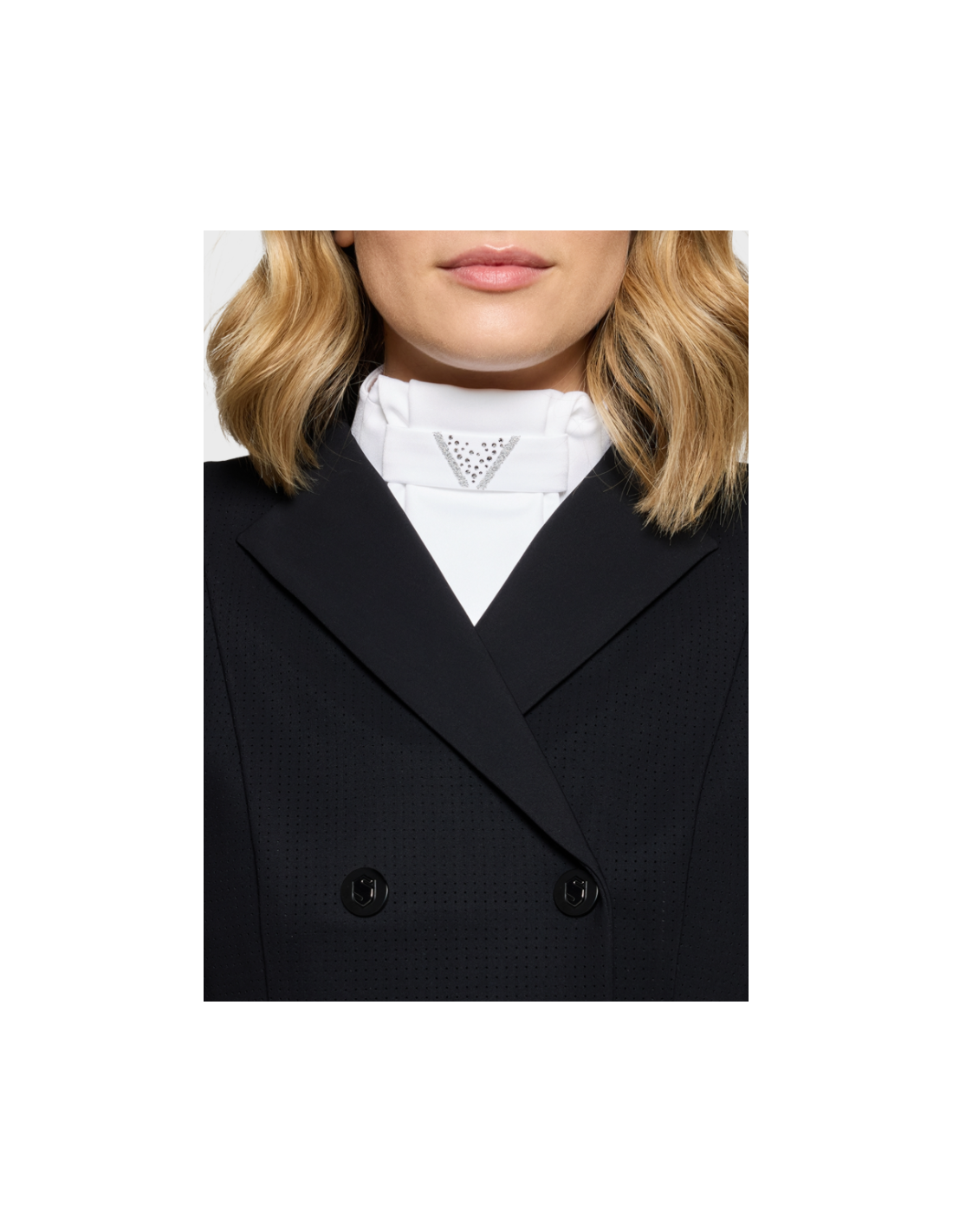 Confectionné dans un tissu italien respirant, stretch et résistant, le Plastron Crystal Fabric Triangle SS26 garantit un confort durable et une excellente gestion de l’humidité. Sa matière wrinkle free permet de conserver un aspect net et soigné sans effort, idéal pour maintenir une présentation impeccable tout au long de la journée. Ce choix de textile haut de gamme assure également une grande résistance à l’usure, parfaitement adaptée à une pratique régulière de l’équitation.