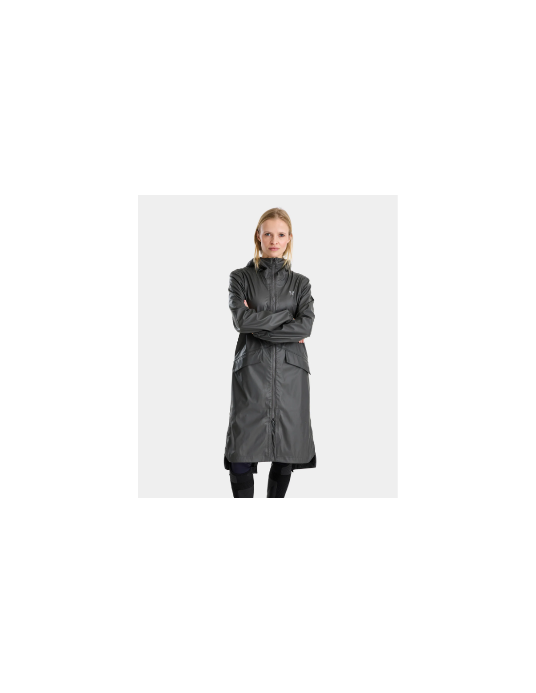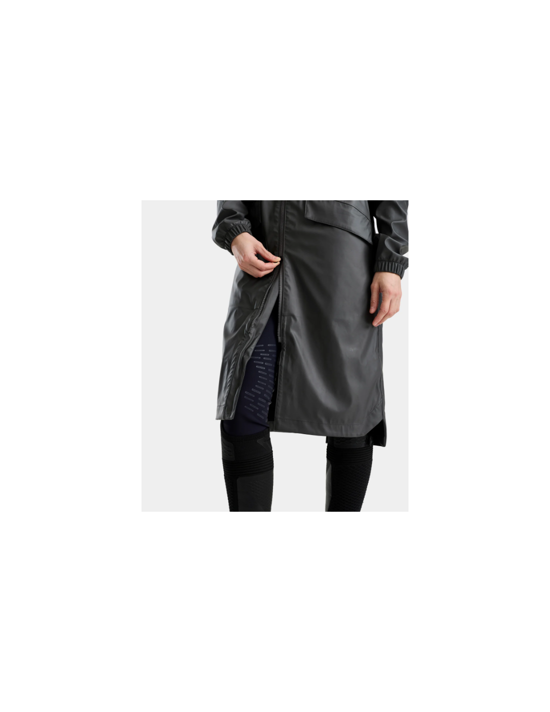 La veste Long Raintech Femme est une veste imperméable d’équitation conçue pour offrir une protection efficace contre la pluie et le vent, grâce à sa matière enduite, ses coutures étanches et son traitement déperlant DWR C0 sans PFC.