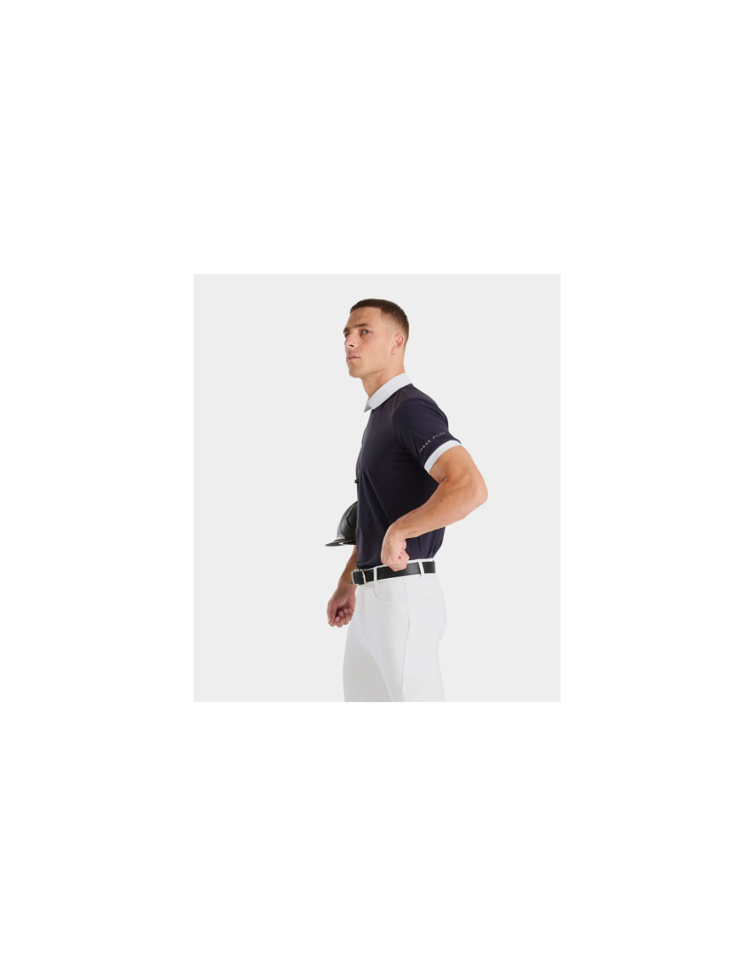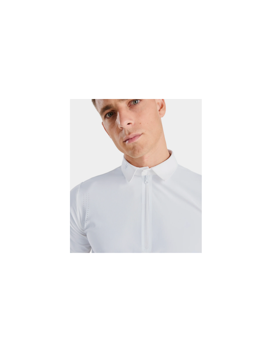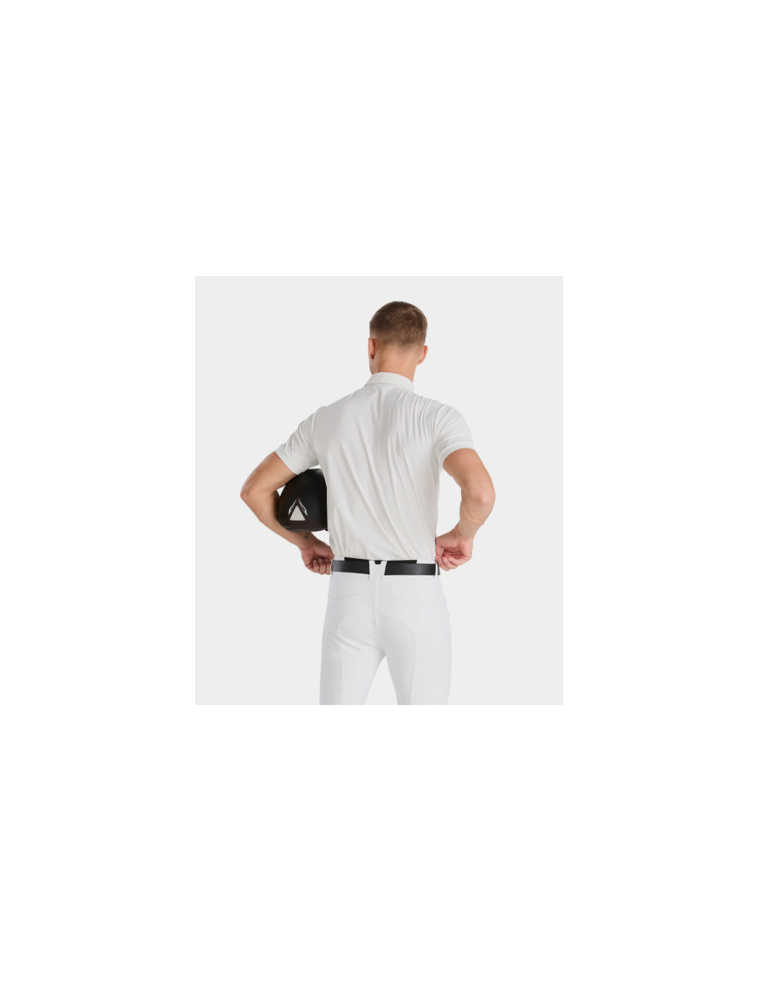 Le polo Aeris est une chemise de compétition technique alliant élégance et performance, idéale pour l’équitation en concours.