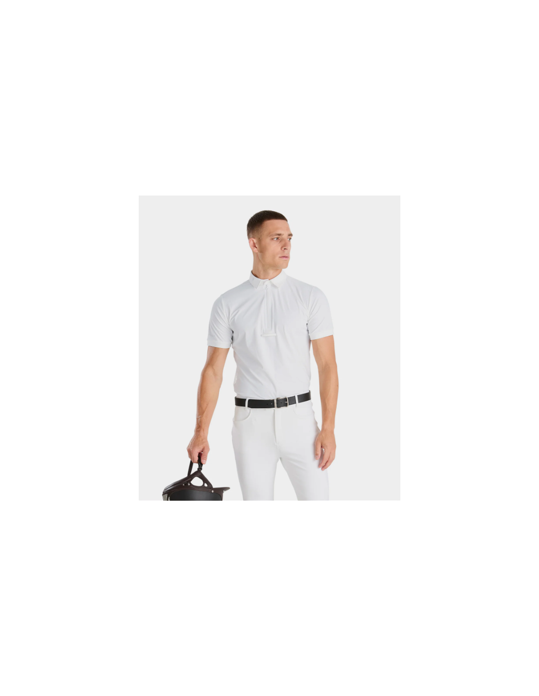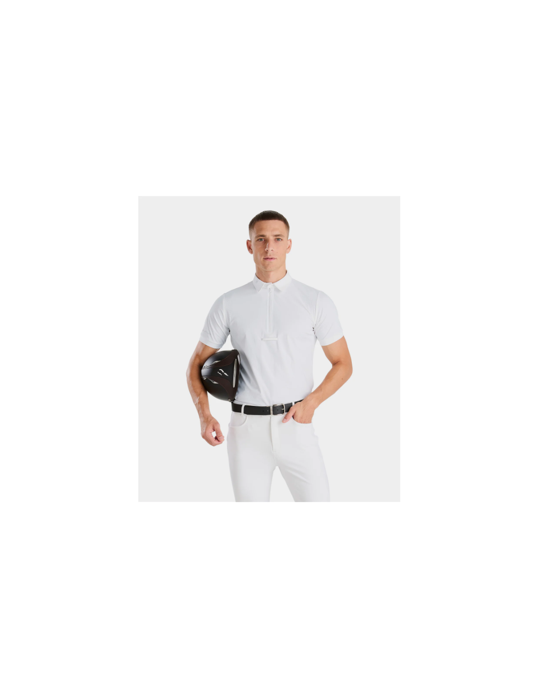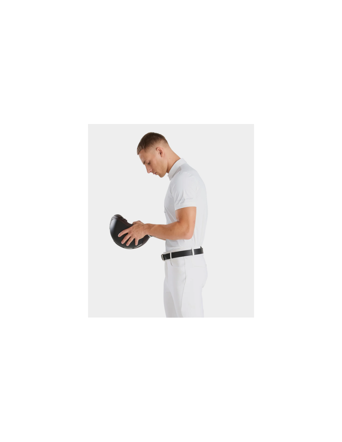 Le polo Aeris est une chemise de compétition technique alliant élégance et performance, idéale pour l’équitation en concours.
