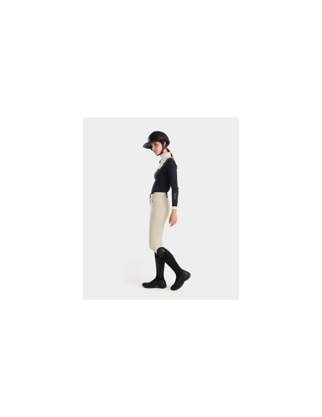 Grâce à sa matière technique innovante, ce pantalon garantit une respirabilité optimale, une protection anti-UV et une grande élasticité grâce à sa conception bi-stretch. Cette combinaison permet une liberté de mouvement totale, essentielle pour suivre les mouvements du cheval sans contrainte.