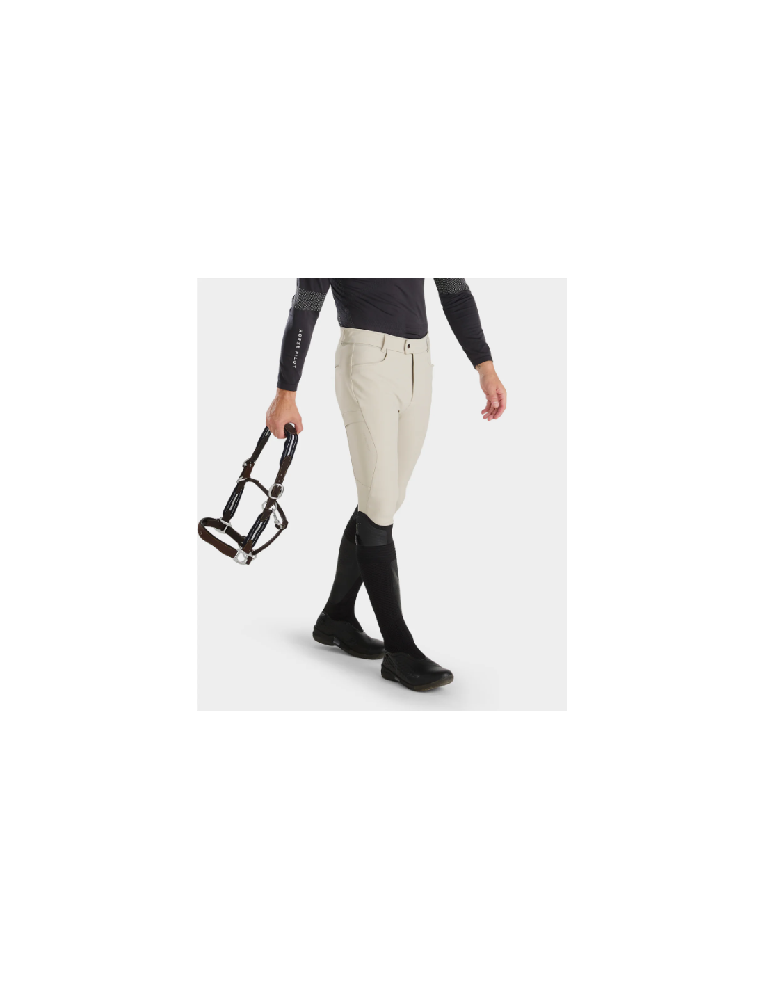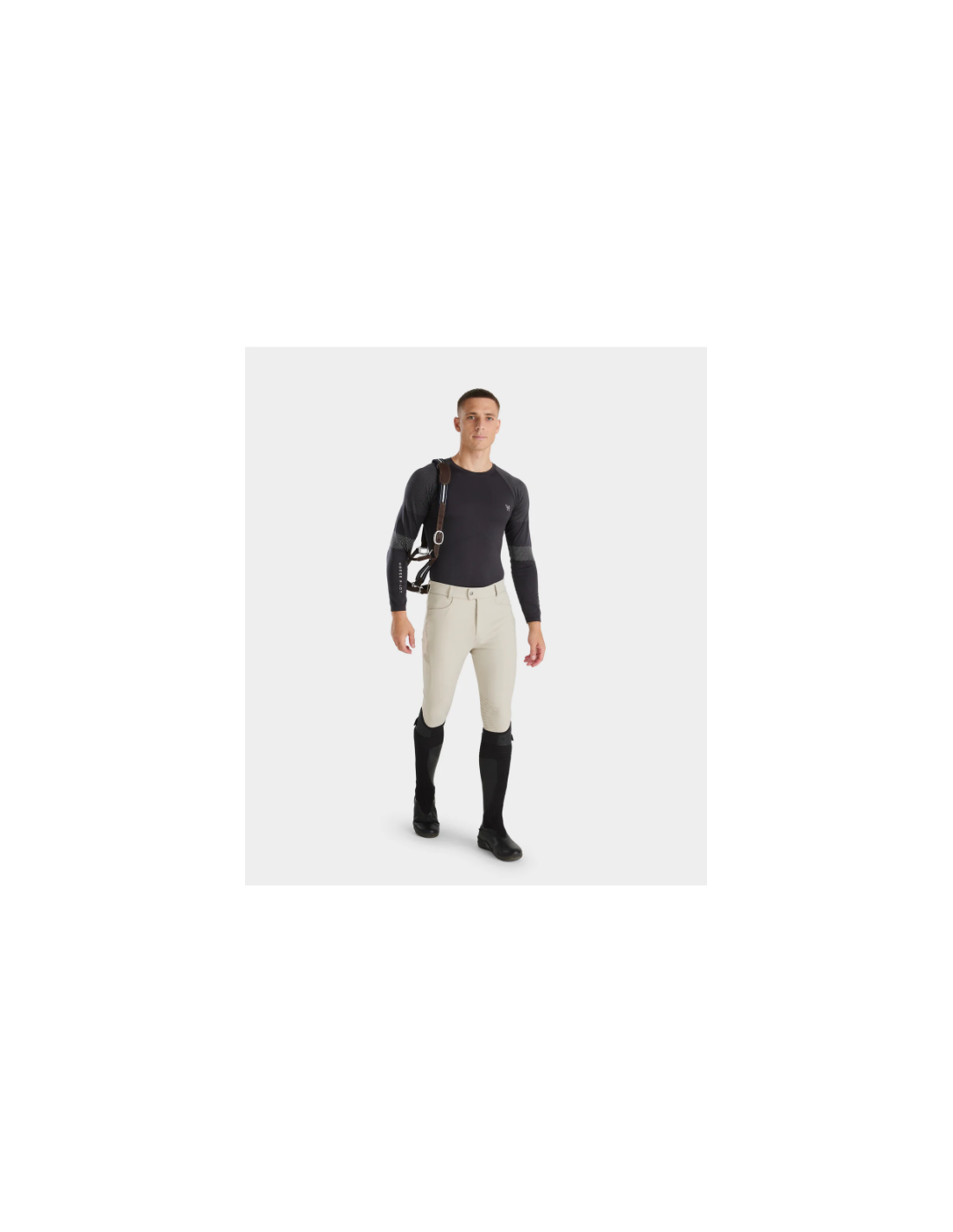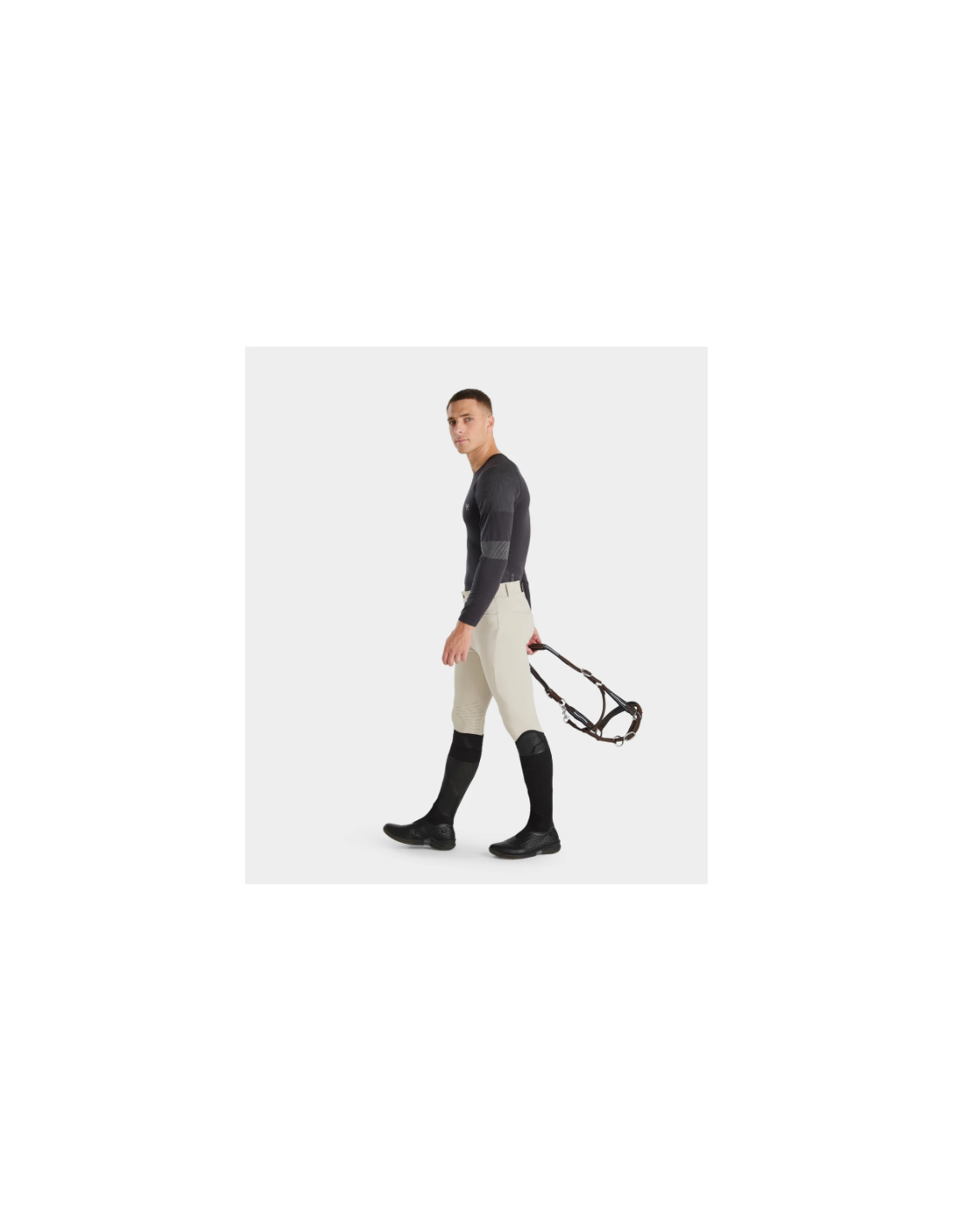 Grâce à sa matière bi-stretch respirante et anti-UV, ce pantalon accompagne chaque mouvement avec fluidité. Les jambes préformées sont spécialement étudiées pour s’adapter à la posture du cavalier.