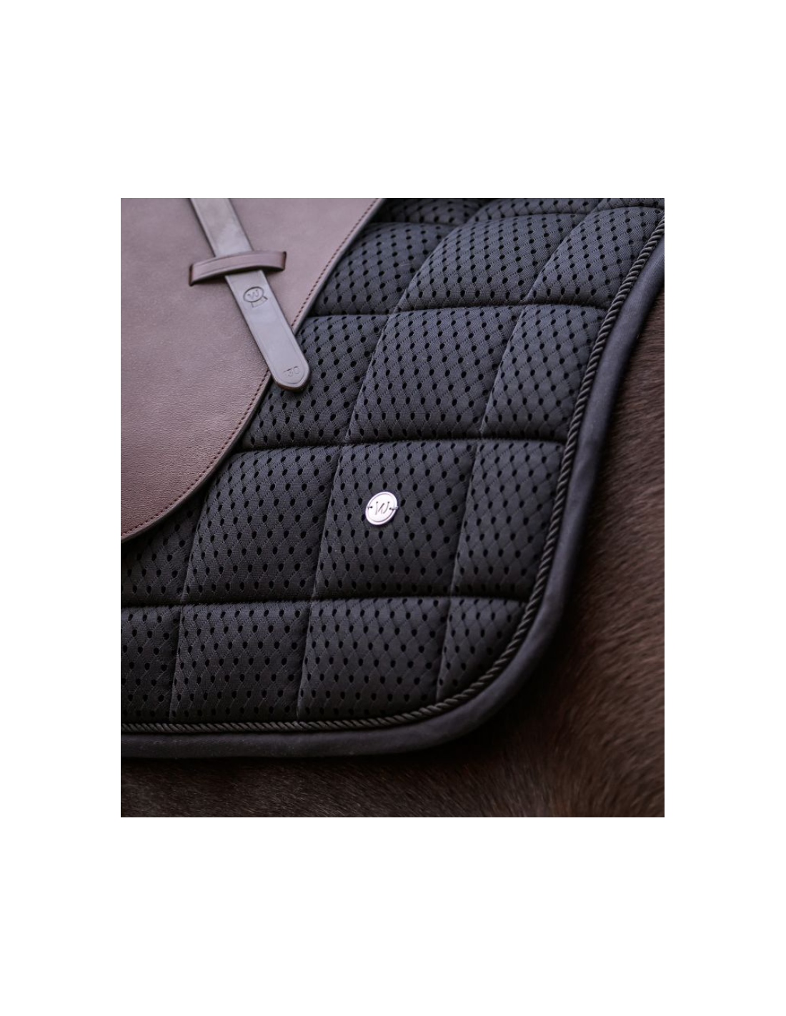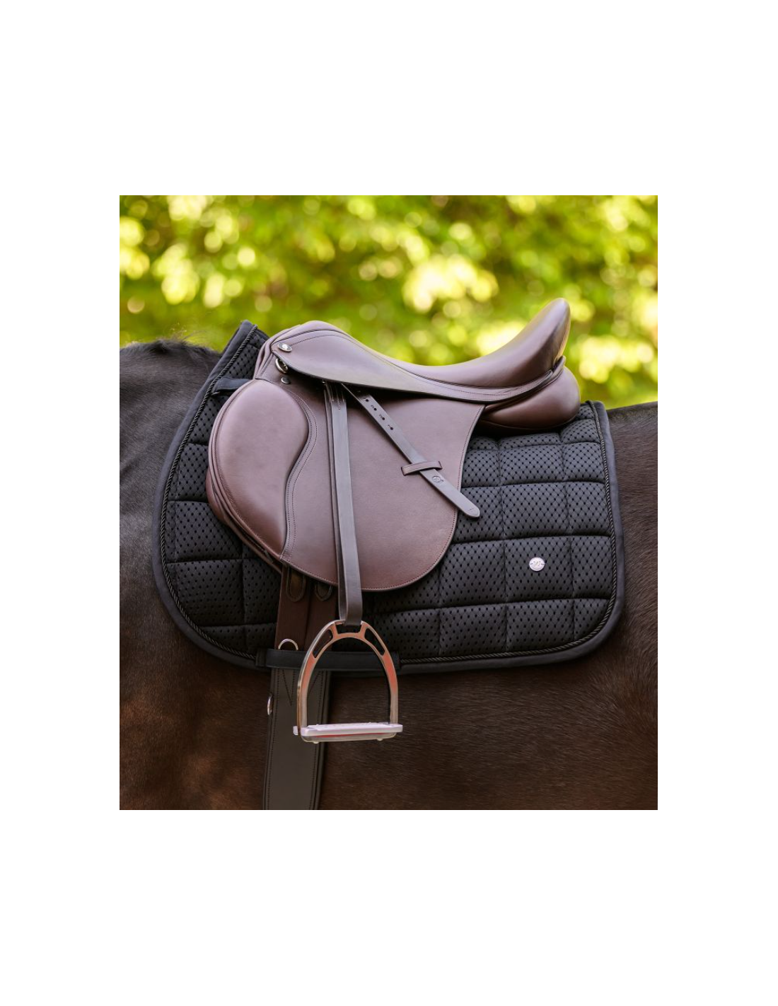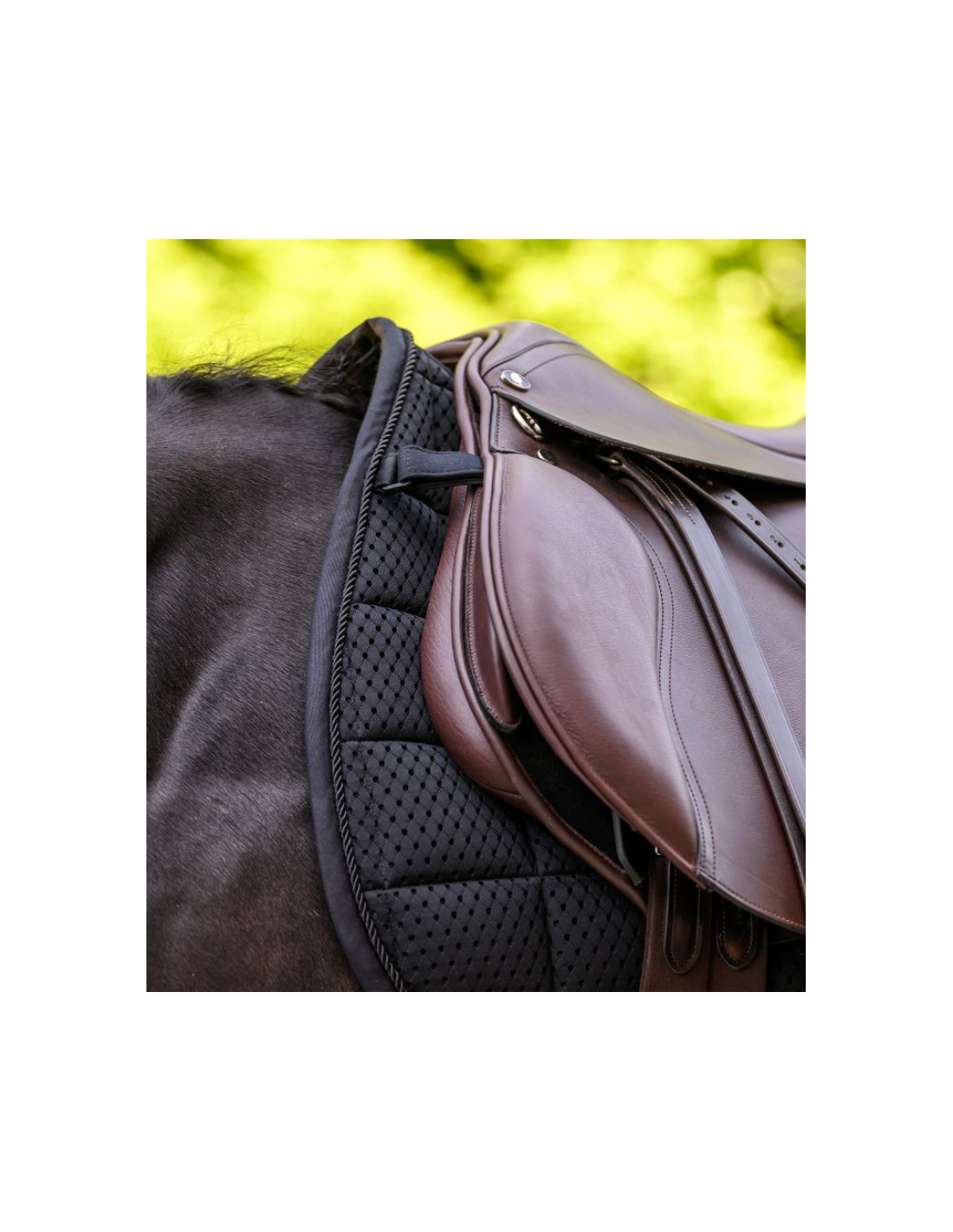 Ce tapis de selle est fabriqué avec une matière extérieure en mesh respirant, associée à un insert en mesh le long du canal rachidien. Cette conception permet :