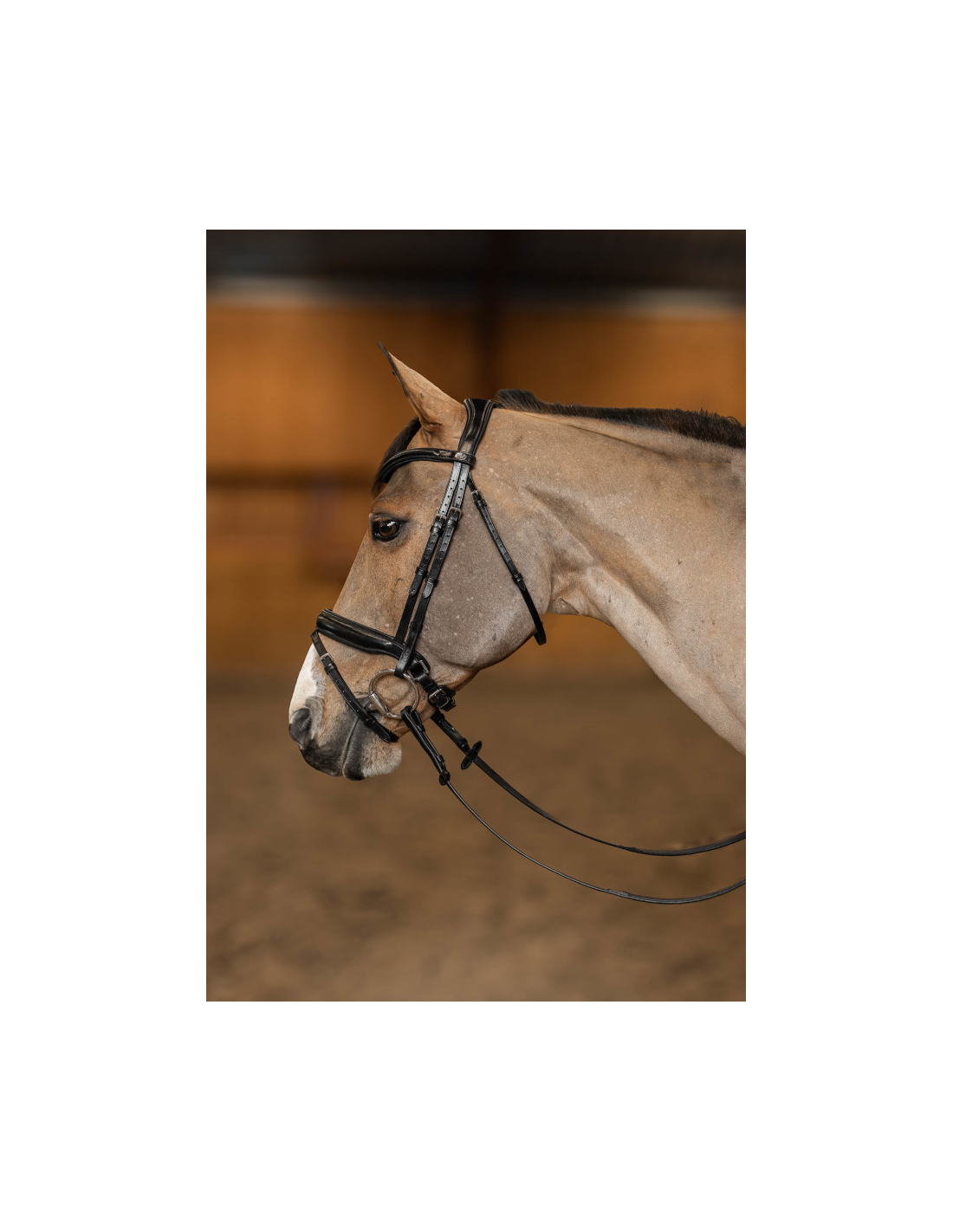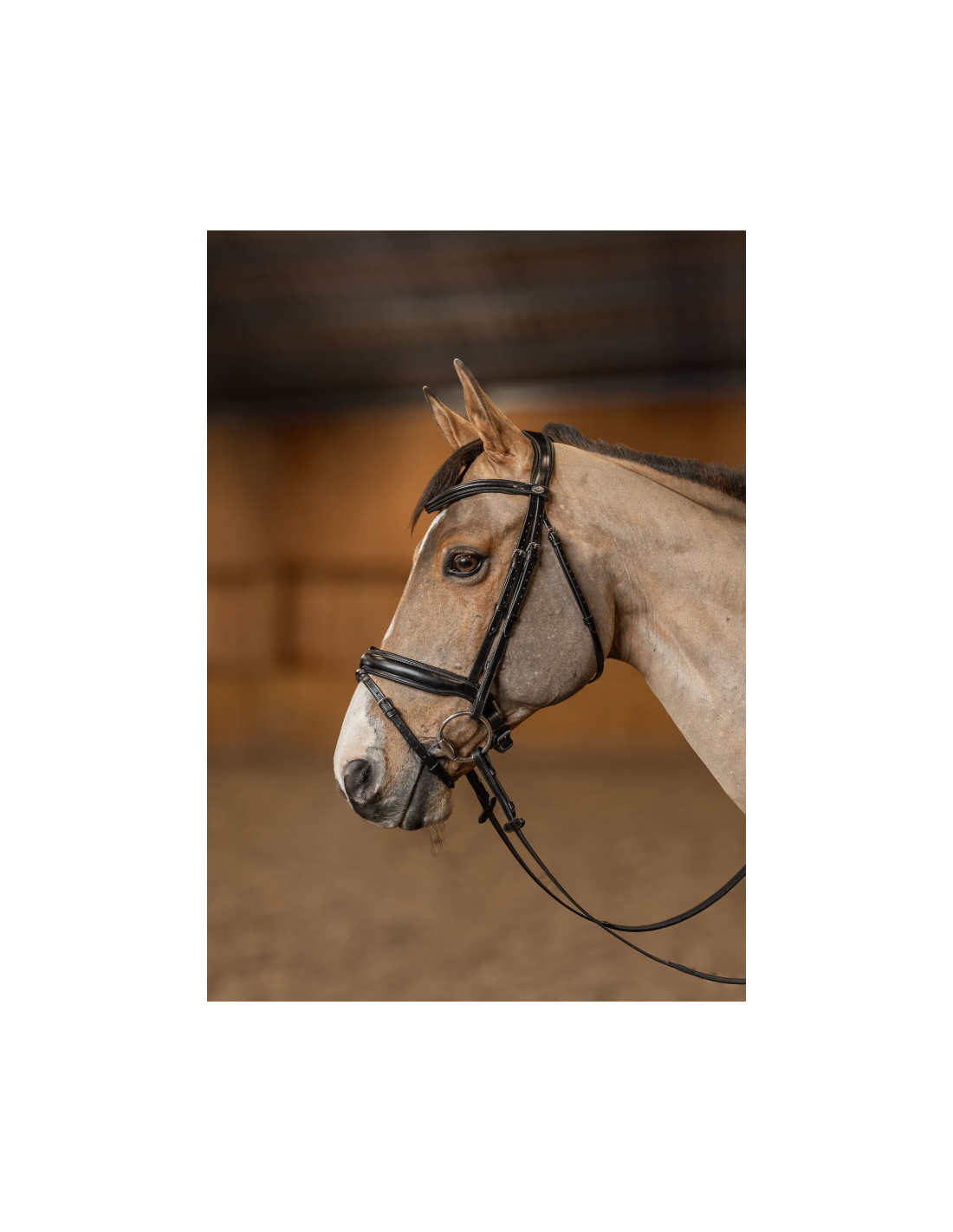 Les surpiqûres ton sur ton apportent une finition discrète et raffinée, renforçant la solidité des coutures tout en conservant une esthétique harmonieuse. Chaque détail est pensé pour offrir un bridon à la fois robuste et élégant, adapté aux exigences de l’équitation moderne.